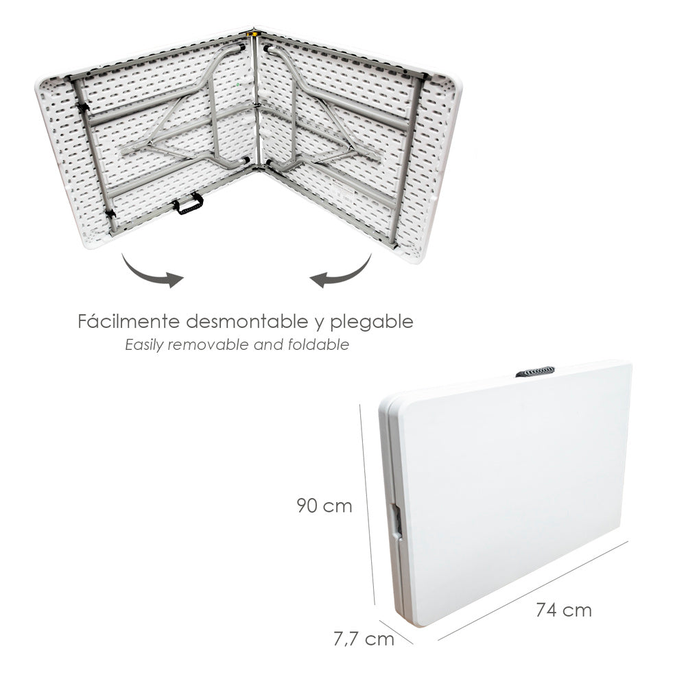 Mesa plegable rectangular HDPE multifuncional, portatil, resistente,multiusos 180x74x74 cm. color blanco