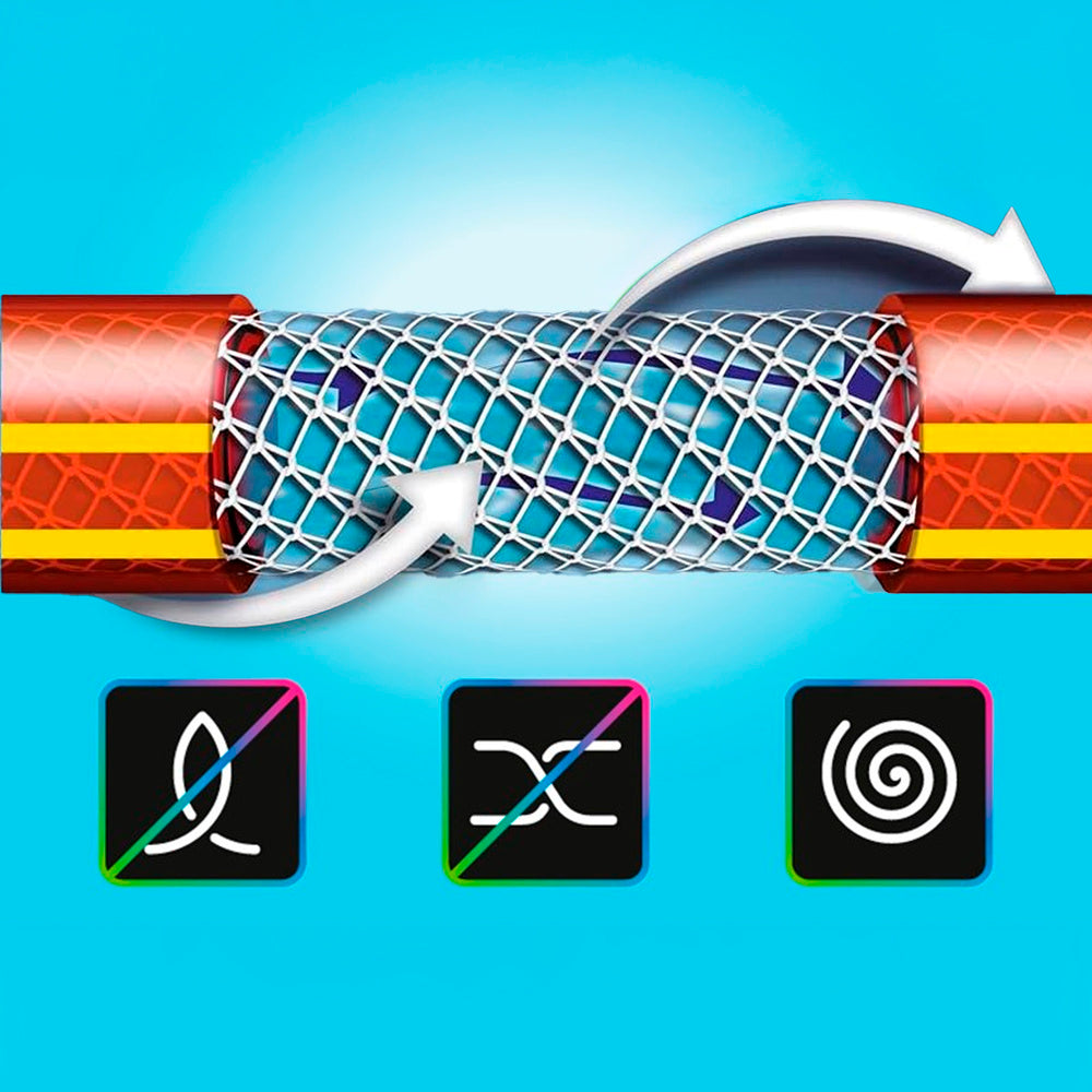 -Manguera de riego con tecnología "no torsion system" que evita todo tipo de dobleces y garantiza una alta durabilidad y comodidad de uso.
