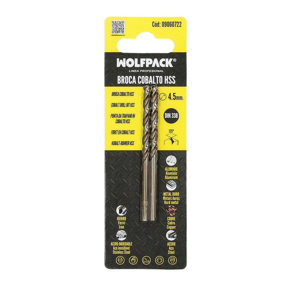 Broca cobalto hss cilindrica 4,50 mm. blister 2 unidades