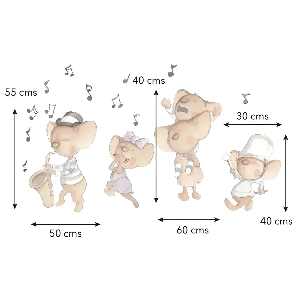 El vinilo decorativo infantil "Familia de ratitas", pintado a mano con acuarelas, es un diseño exclusivo para decorar habitaciones infantiles, ideal para padres que buscan añadir un toque creativo y personalizado a puertas, paredes o muebles.