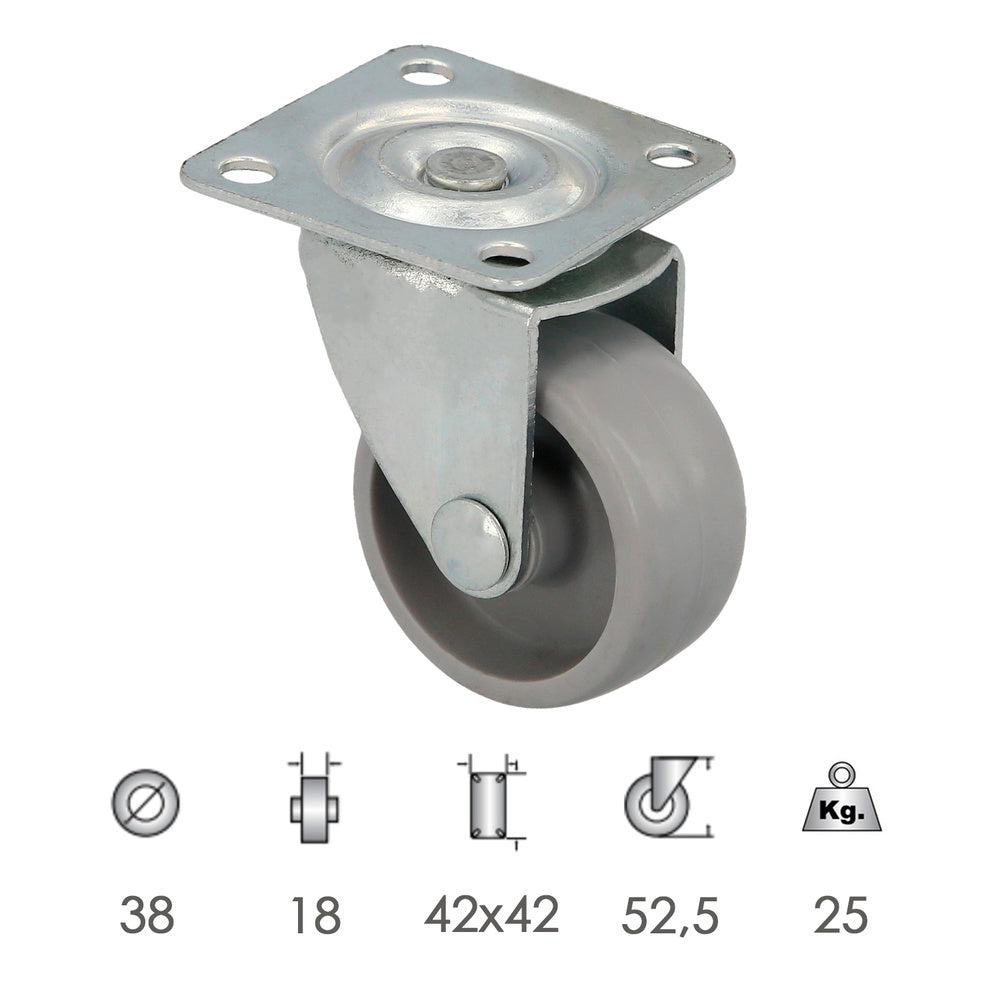 Rueda Domestica Ø 38 mm. Con Placa 42x42 mm.