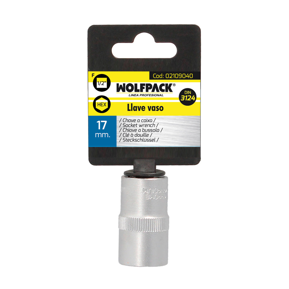 Llave vaso 1/2" hexagonal 17 mm. perfil de 6 caras. acero cromo vanadio, aristas redondas