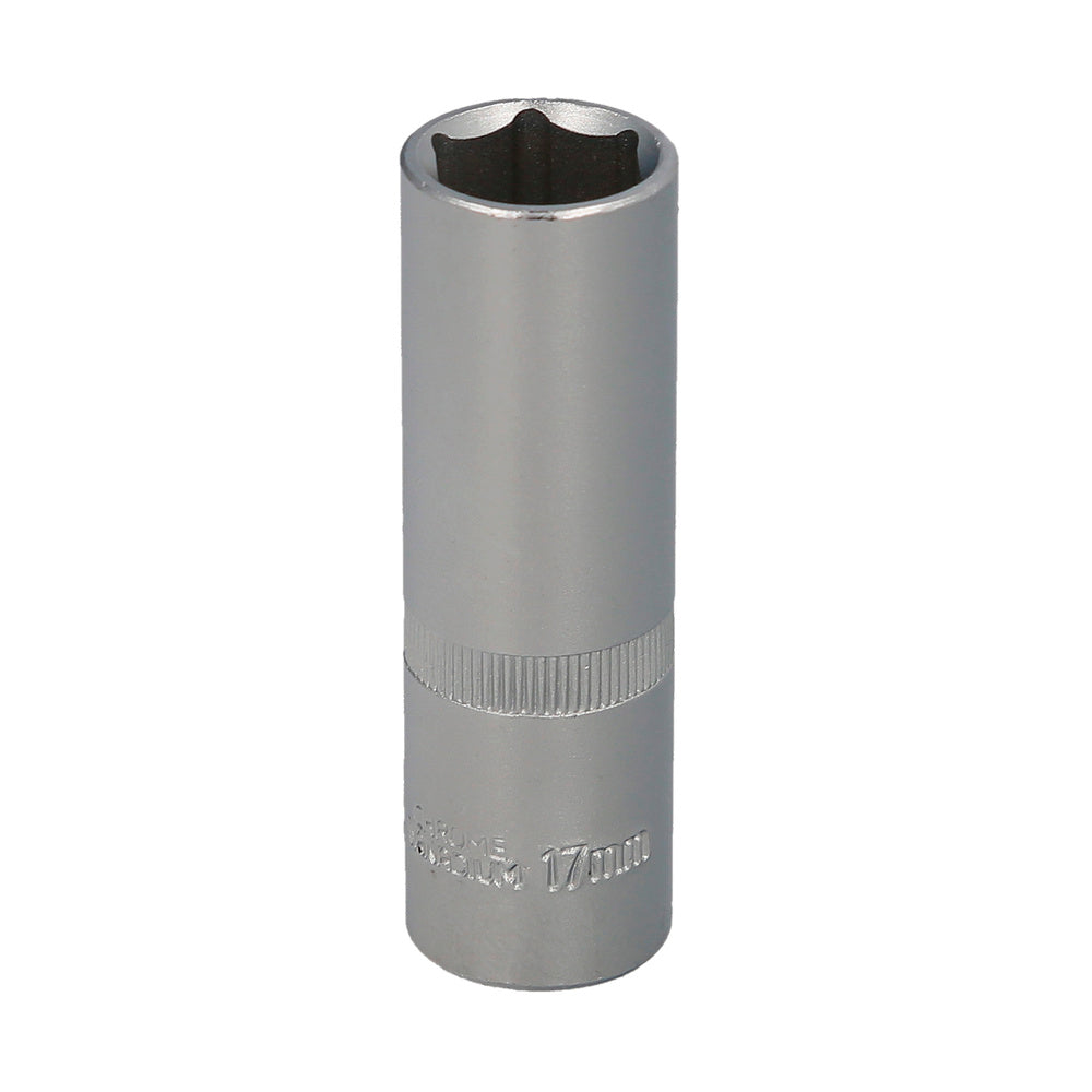 Llave vaso 1/2" hexagonal larga 17 mm. perfil de 6 caras. acero cromo vanadio, aristas redondas