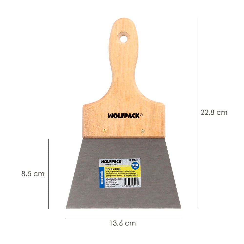 Espatula techos mango madera hoja acero 90 x 140 mm. espatula yeso, espatula pintor, espatula masillas, espatula pladur, etc