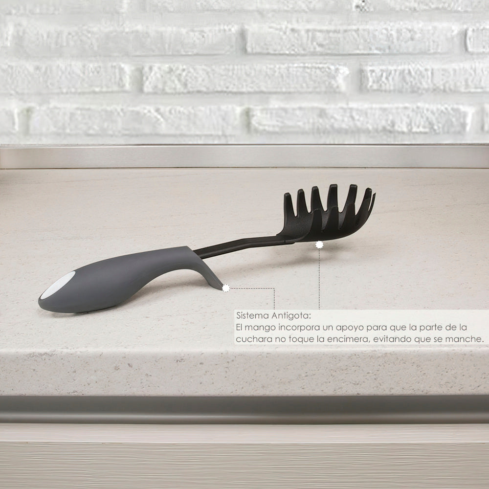 Cuchara Pastas Espaguetis Nylon Con Mango Antigotas Engomado 31,5 x 6 cm.