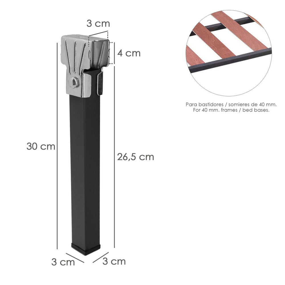 Juego patas somier cuadradas (4 unidades) tubo 30x30 mm. para somier de 40x30 mm. altura 25 cm