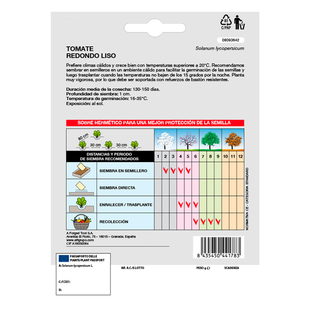 - Temperatura de germinación: 16-35 ºC.
