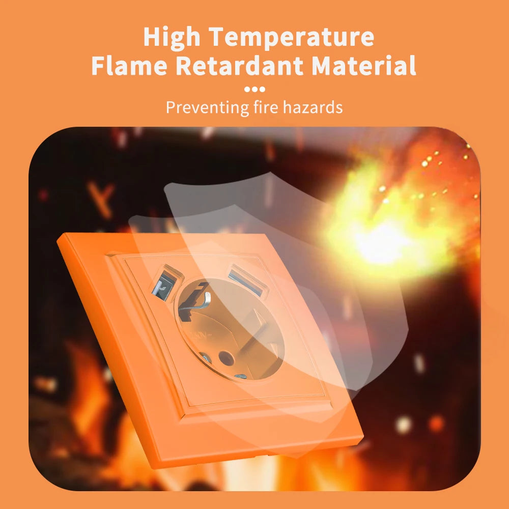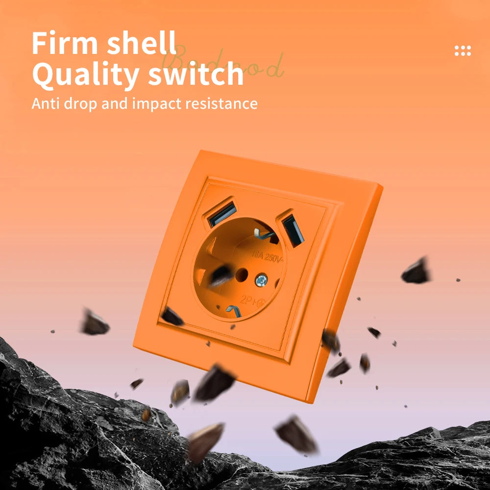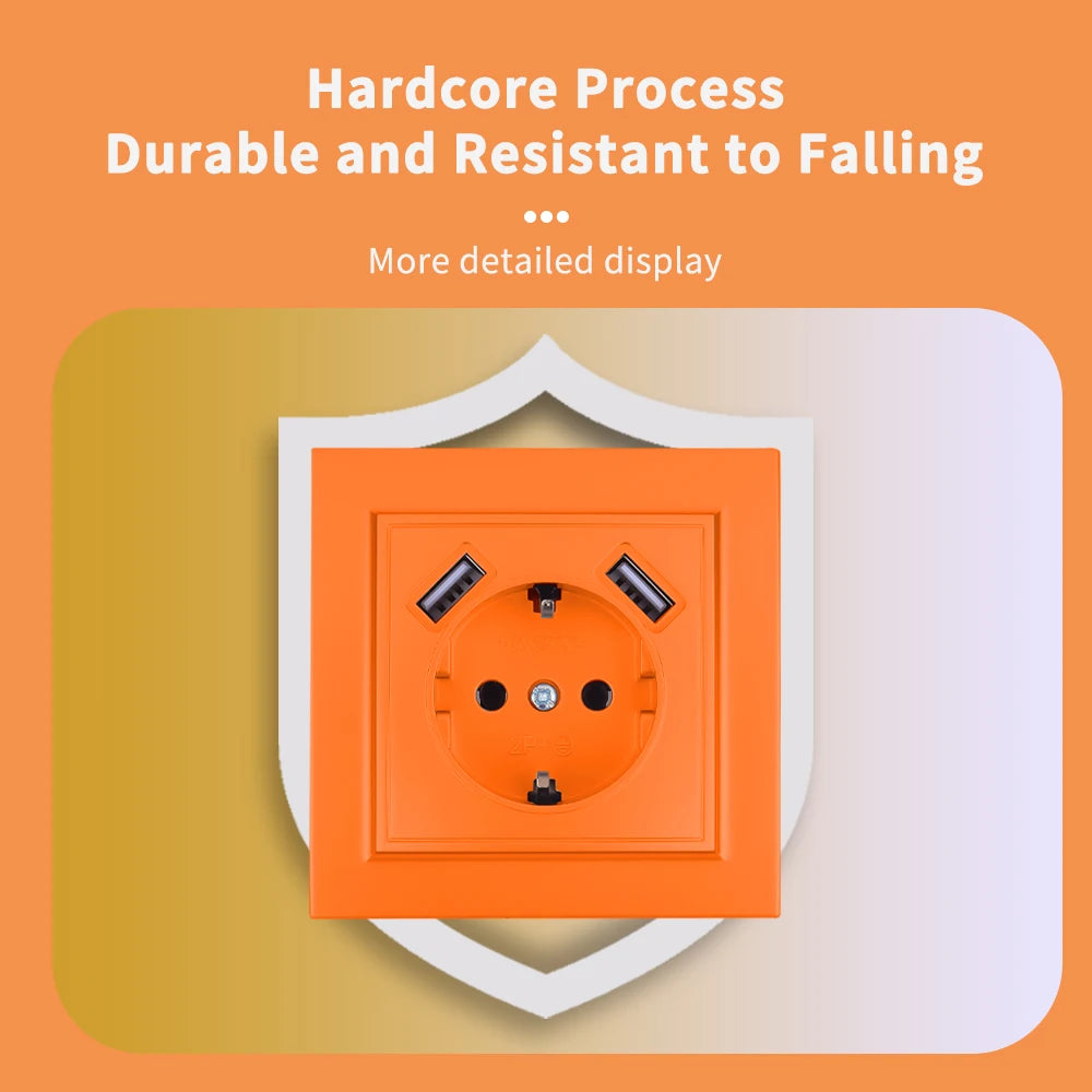 Enchufe de pared con toma de tierra y 2 USB naranja 2,1 A
