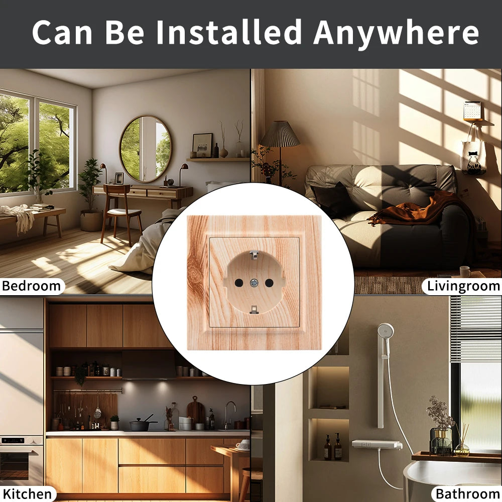 • Contenido del pack: 1 × enchufe empotrable efecto madera (módulo + placa frontal).