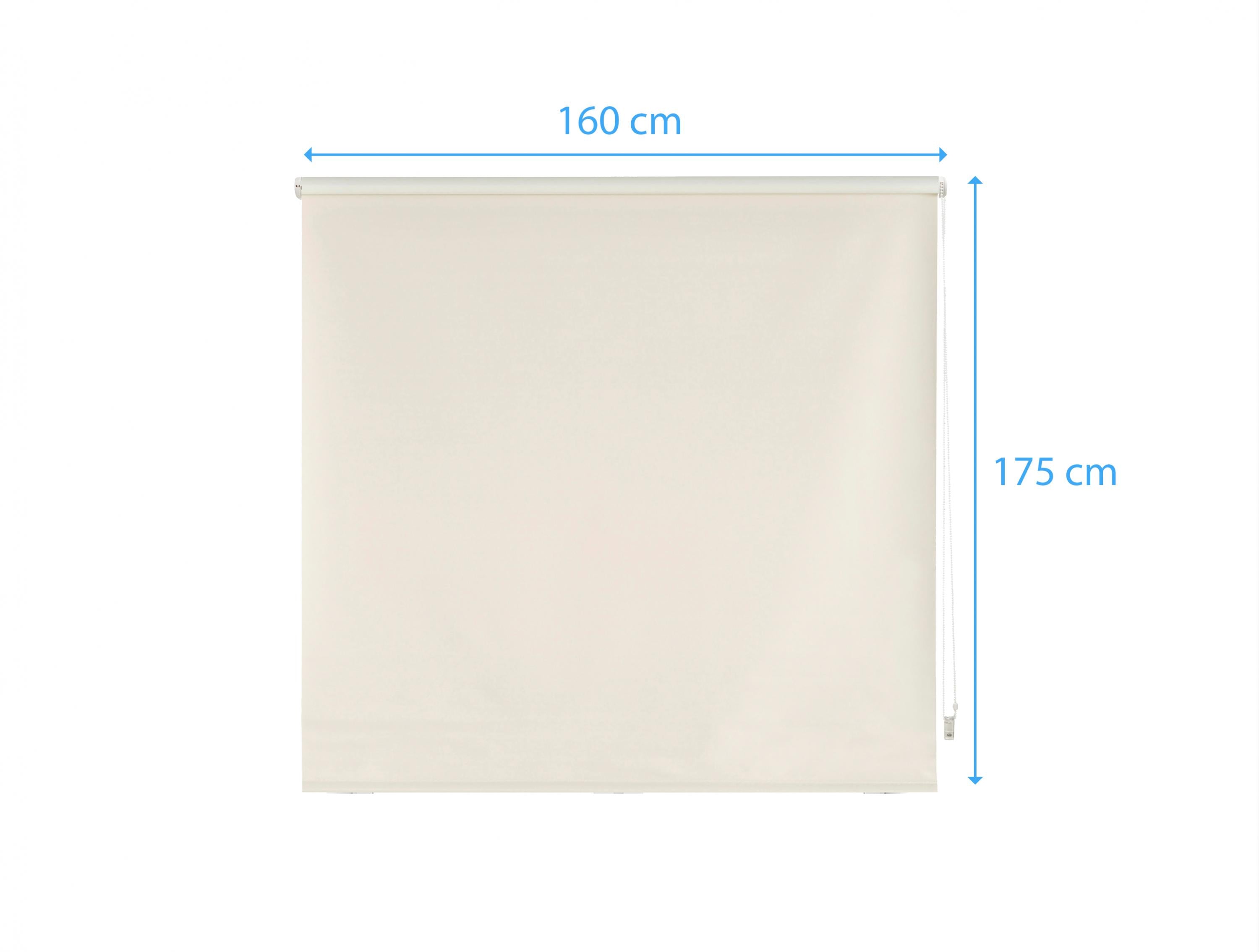 Estor enrollable de poliéster translúcido en beige, de 160 x 175 cm. El modelo OPACARA regula la entrada de luz y aporta privacidad en salones, dormitorios u oficinas, gracias a su tejido liso y translúcido.