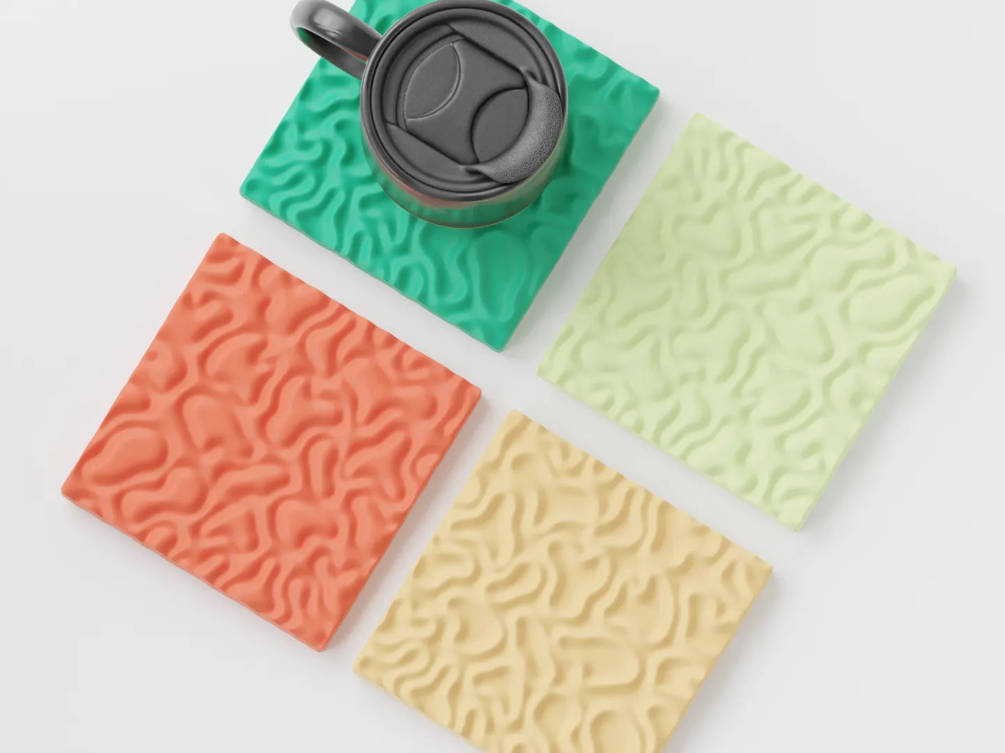 Este set de 4 posavasos modernos con textura orgánica es ideal para quienes buscan añadir un toque de diseño contemporáneo a su mesa o espacio de trabajo, protegiendo eficazmente las superficies de manchas y arañazos.