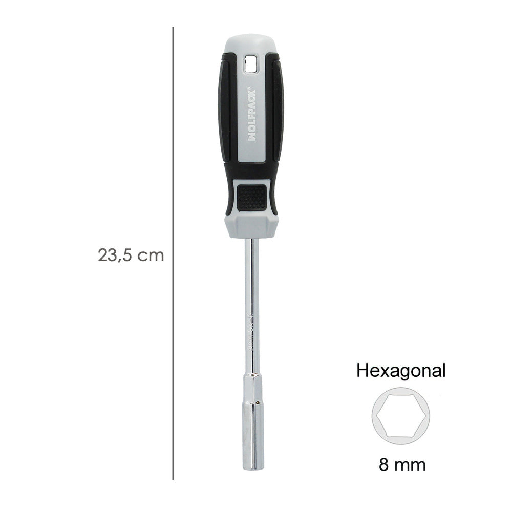 - Además, su mango cuenta con un acabado plano que te permite utilizar una llave fija o una llave inglesa para aumentar la fuerza de apriete. Incluso puedes emplearlo como un mango en T, simplemente introduciendo otro destornillador a través del orificio del mango.