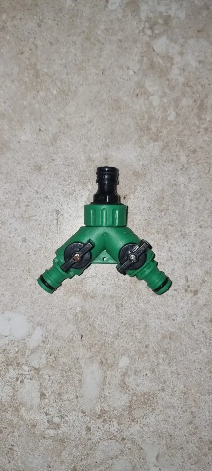 Divisor de manguera en Y ajustable para jardín. Ideal para aficionados al cuidado del exterior que necesitan regar varias zonas a la vez, con un control preciso del caudal.