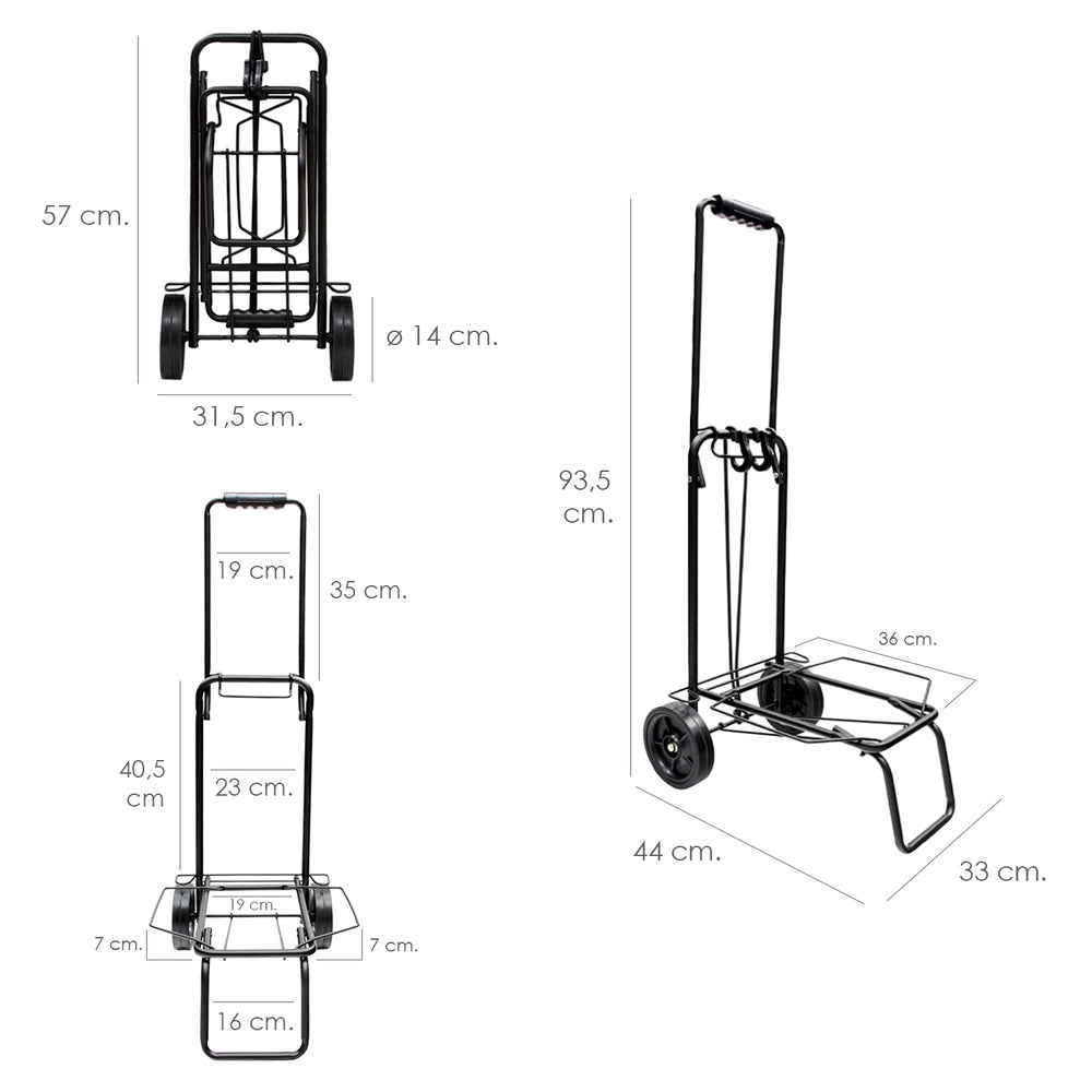 Carretilla plegable metalica de carga - porta maletas con cuerda elastica 93,5x33x44 cm. carro de transporte 50 kg