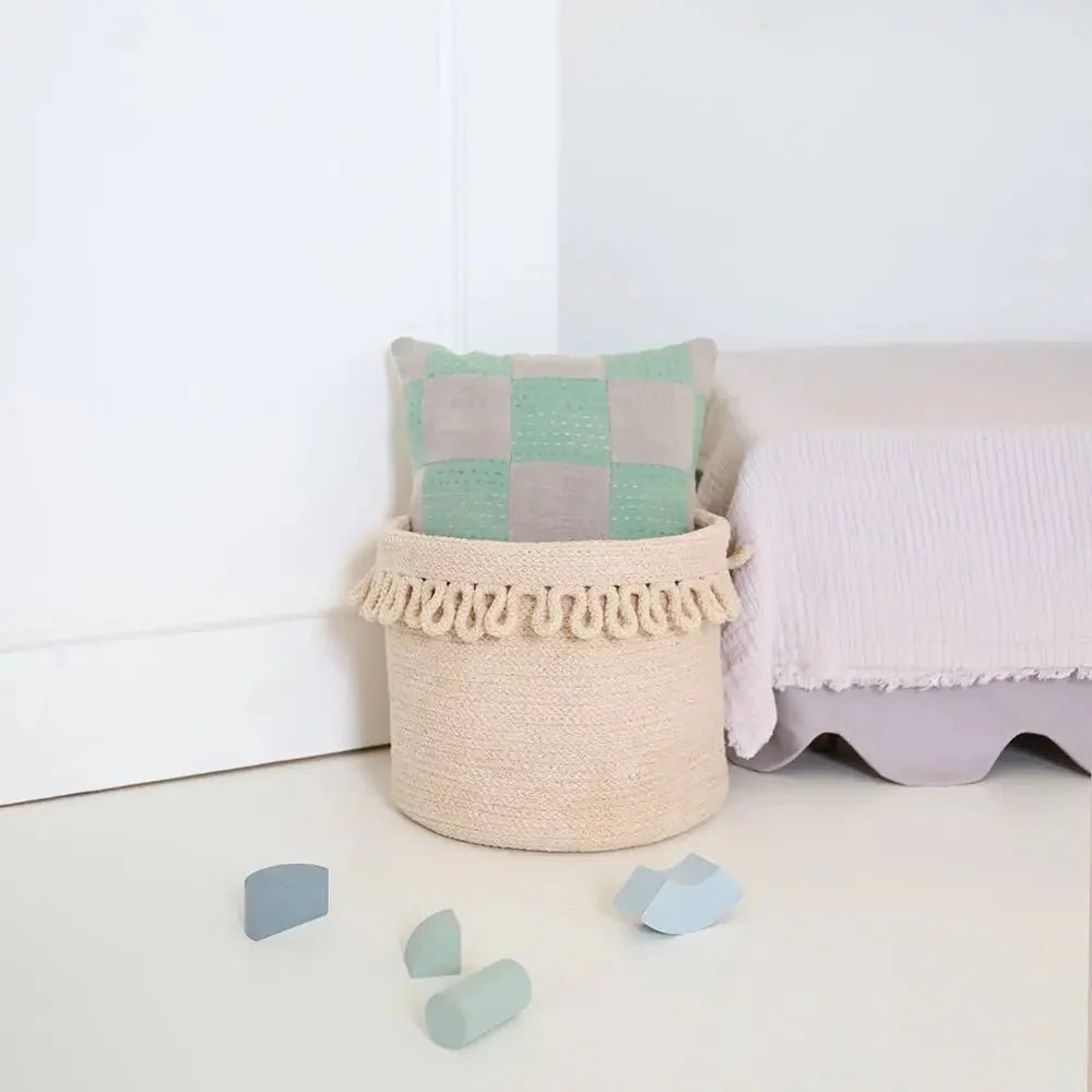 Esta cesta de almacenamiento está hecha a mano con cuerda de algodón, ideal para toda la familia que busca organizar el hogar de manera práctica y elegante, añadiendo un toque de sofisticación a cualquier espacio.