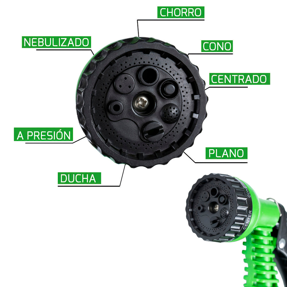 Manguera extensible riego 5 a 15 metros con pistola de 7 posiciones