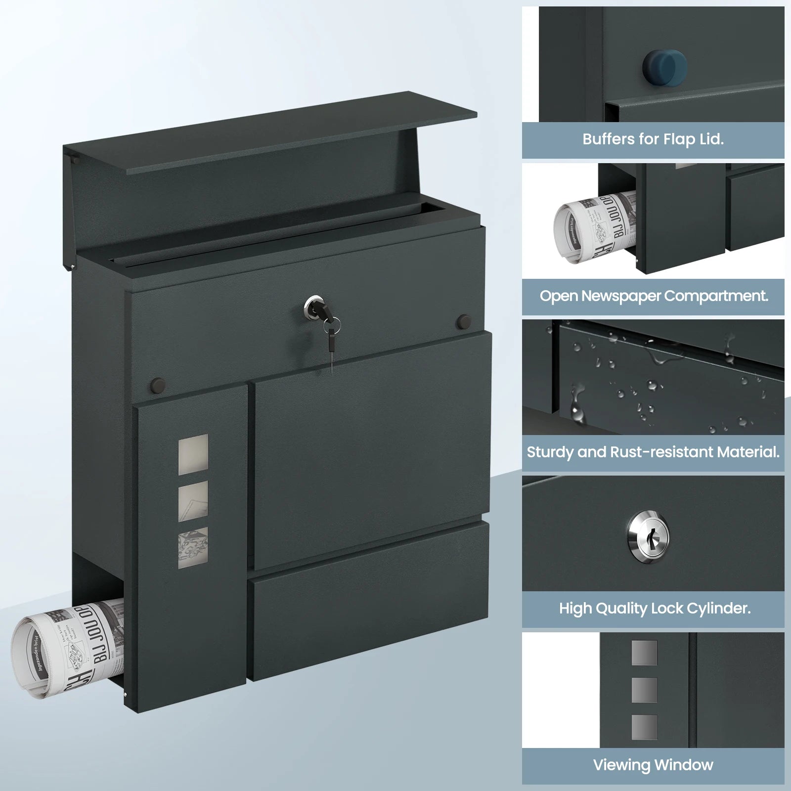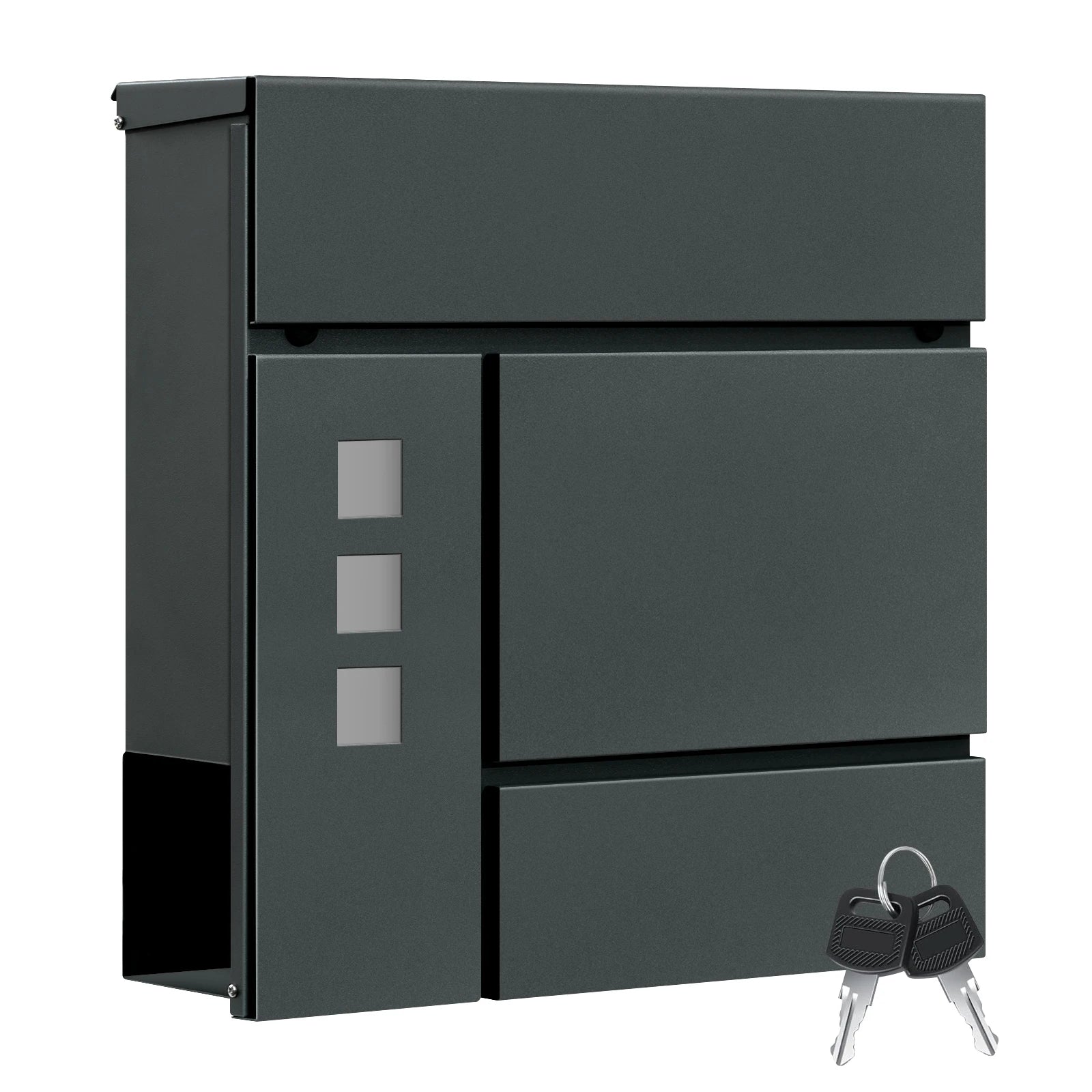 Buzón moderno antracita con portaperiódicos | ventanillas