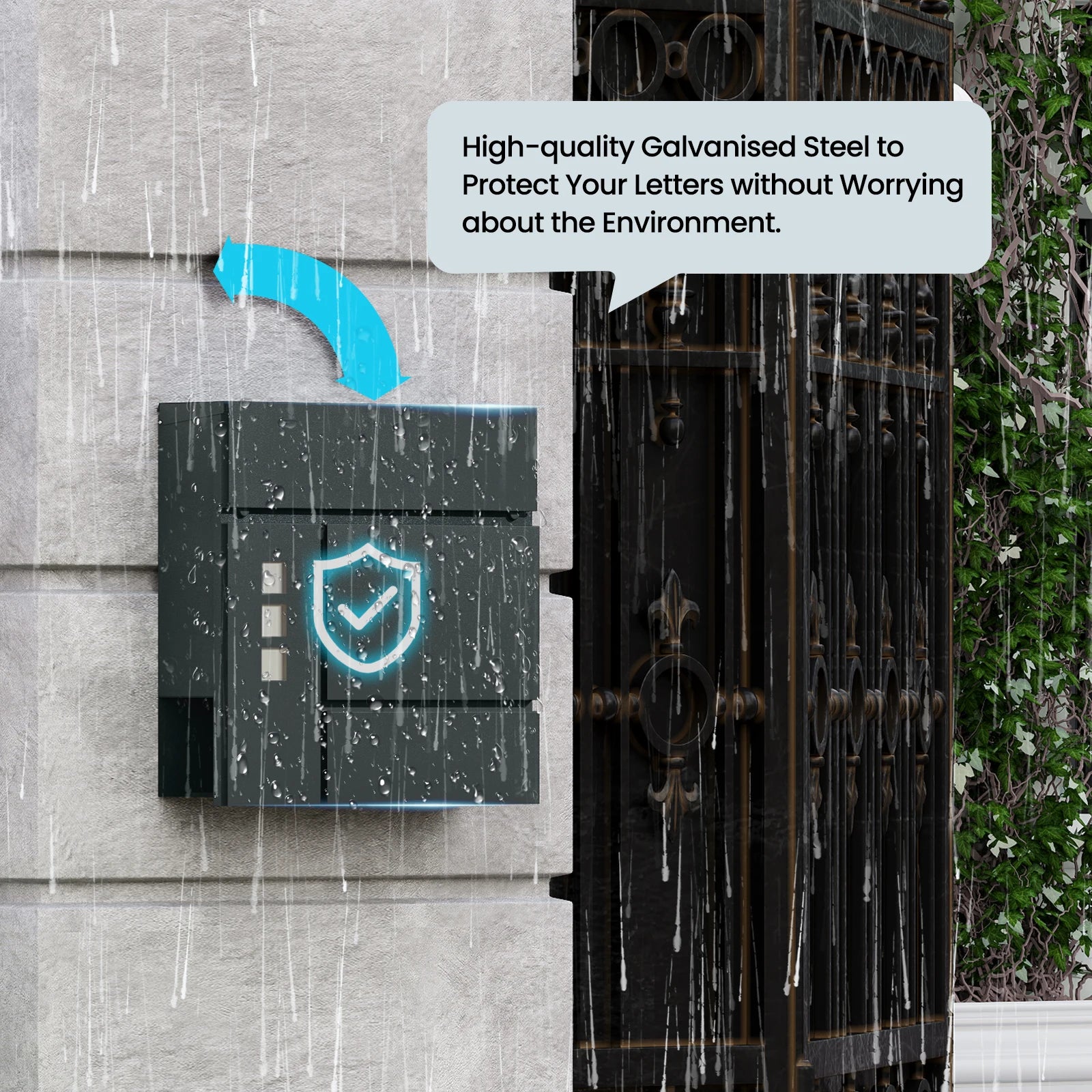 Buzón moderno antracita con portaperiódicos para la entrada de casa o comunidad. Diseñado para ser duradero y práctico, permite gestionar el correo y las revistas de forma ordenada y protegida.