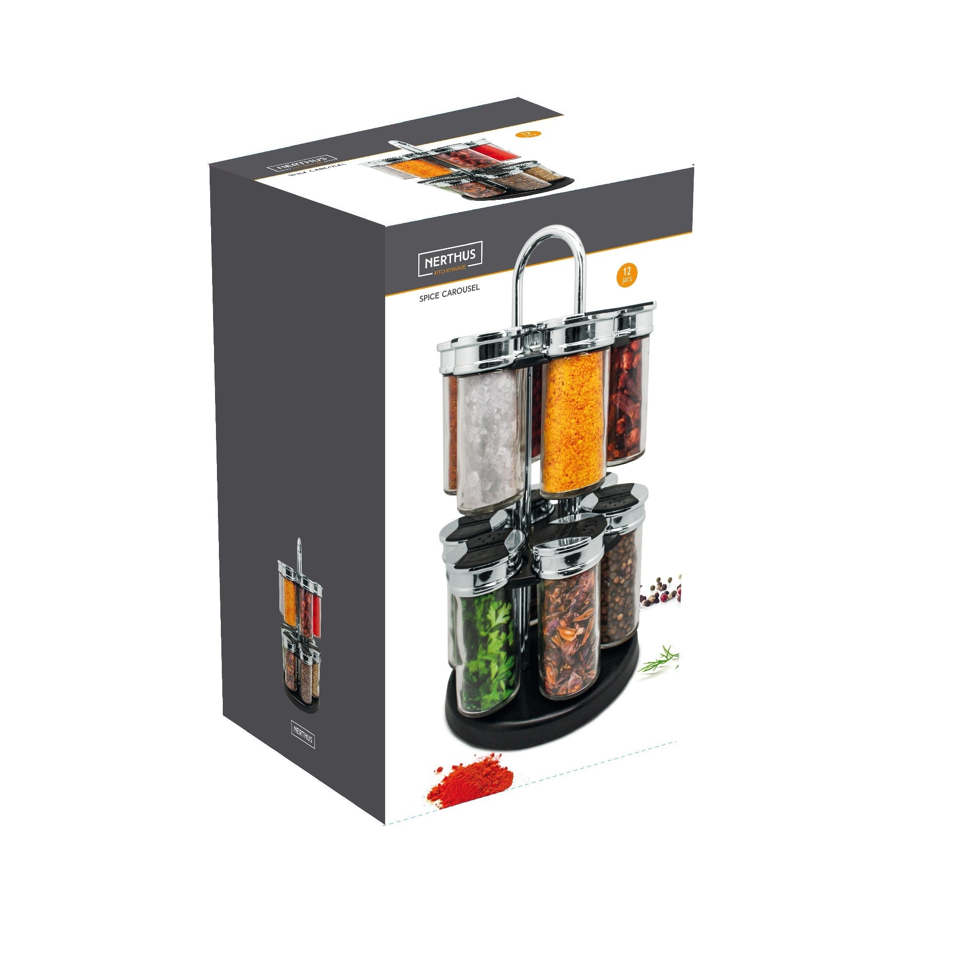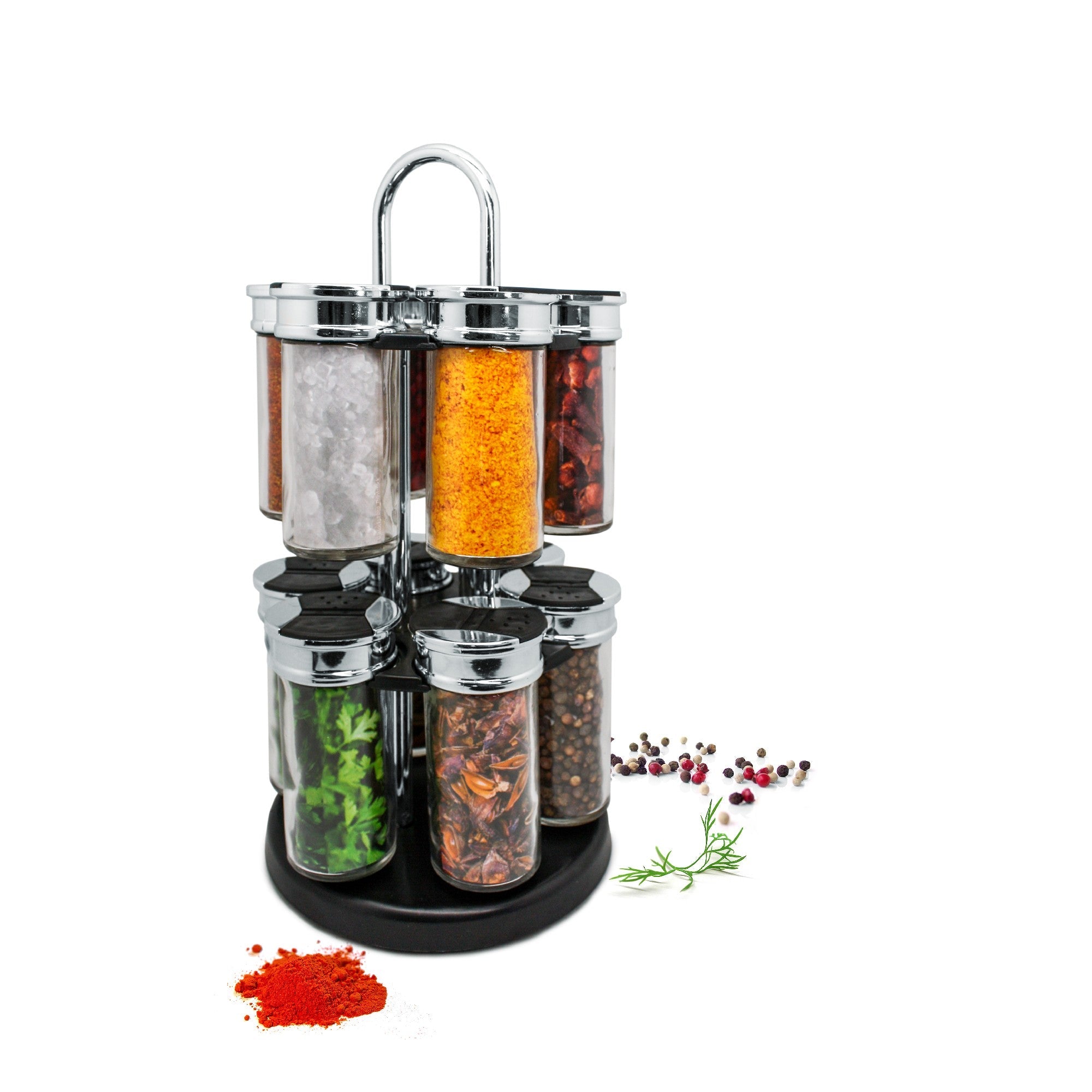Organiza tus especias con estilo y funcionalidad gracias al Carrusel Especiero con 12 u 8 Botes Transparentes. Su diseño giratorio de sobremesa te permite acceder fácilmente a todas tus especias mientras cocinas, manteniéndolas visibles, ordenadas y siempre a mano.