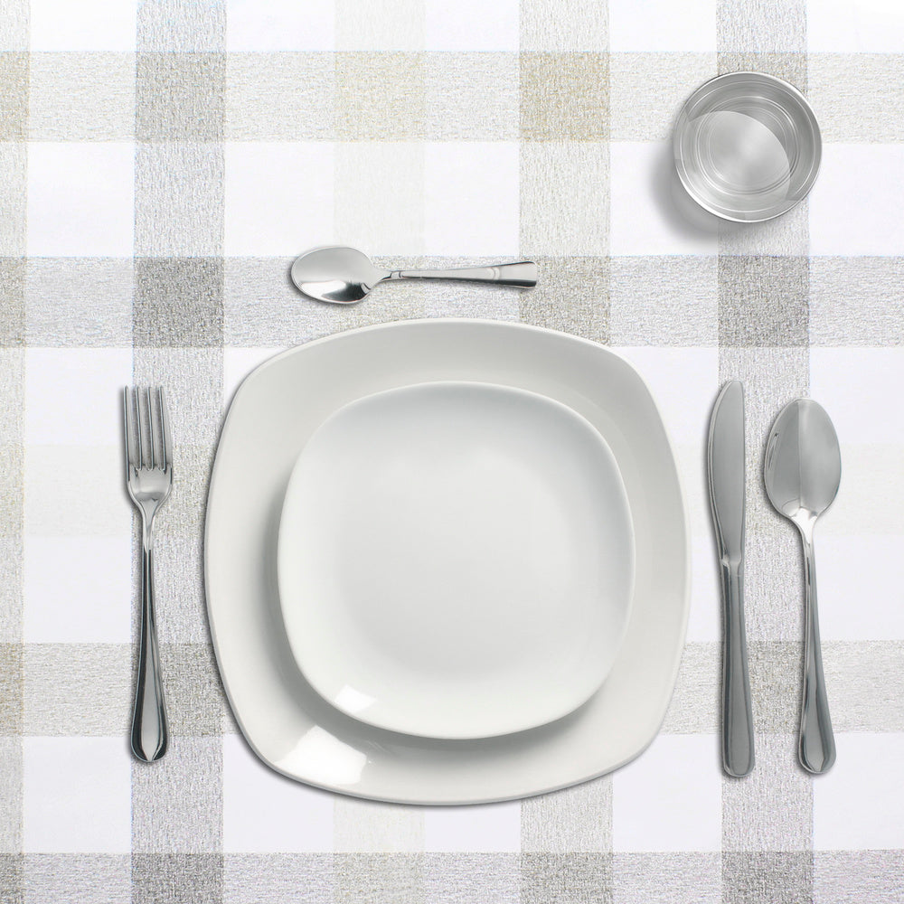 Mantel hule rectangular cuadros beis. impermeable antimanchas PVC 140 cm. x 20 metros. rollo recortable. interior y exterior