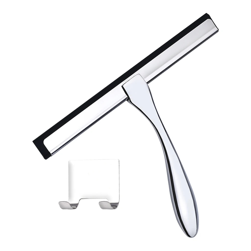 Escobilla ducha de acero inoxidable con silicona, diseñada para facilitar la limpieza de duchas, mamparas y superficies lisas. Ofrece una limpieza rápida y sin rayas ni chirridos gracias a sus materiales y diseño ergonómico.