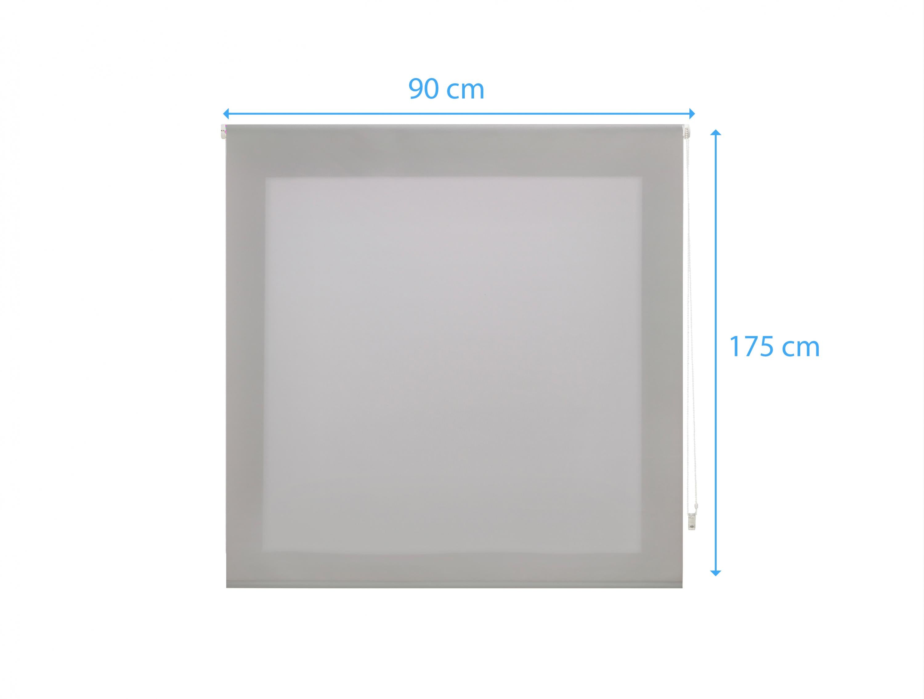 Estor enrollable translúcido de color plata, talla 90X175 cm y fabricado en poliéster. Ideal para salón, dormitorio u oficina, regula la entrada de luz y mejora la privacidad manteniendo un ambiente claro y agradable.