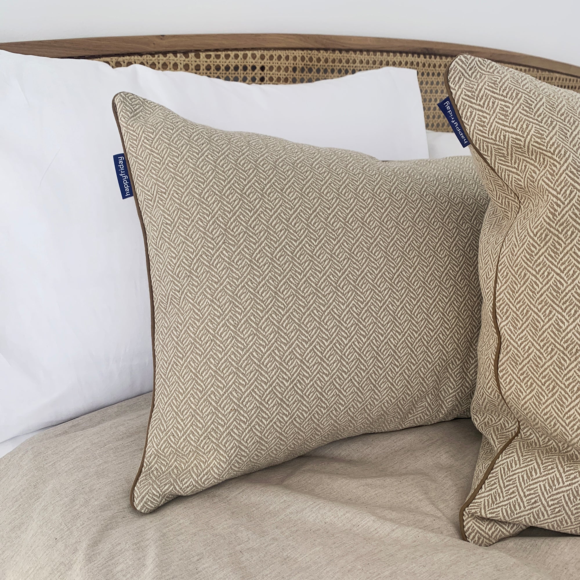 Eleva la elegancia de tu hogar con la funda de cojín decorativo HERRINGBONE en un sereno tono beige.