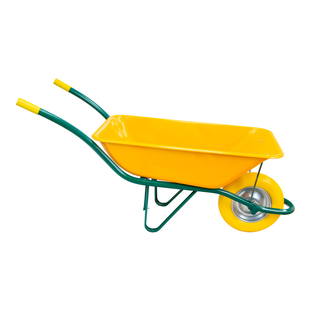 Carretilla obra amarilla metálica desmontada rueda maciza