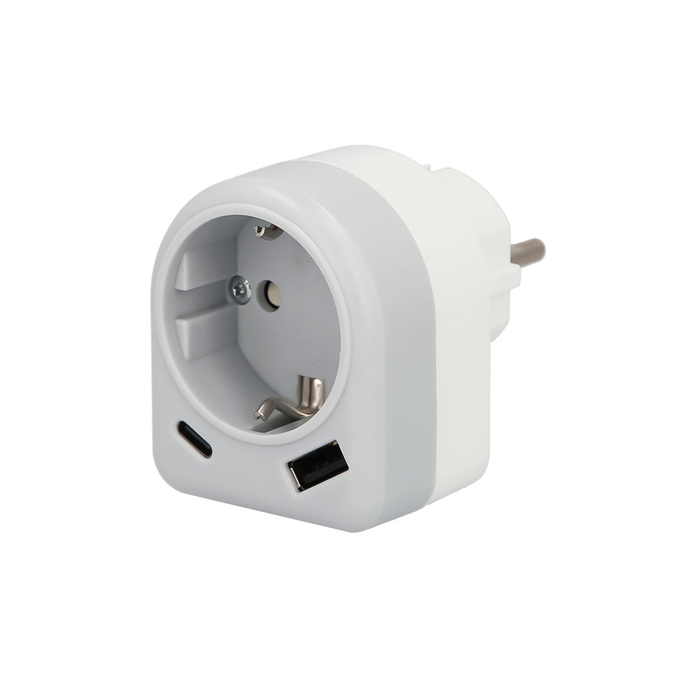 Enchufe / adaptador schuko con 2 tomas, USB a / c. potencia maxima 3680 w. cargador moviles, cargador 2 tomas, adaptador moviles