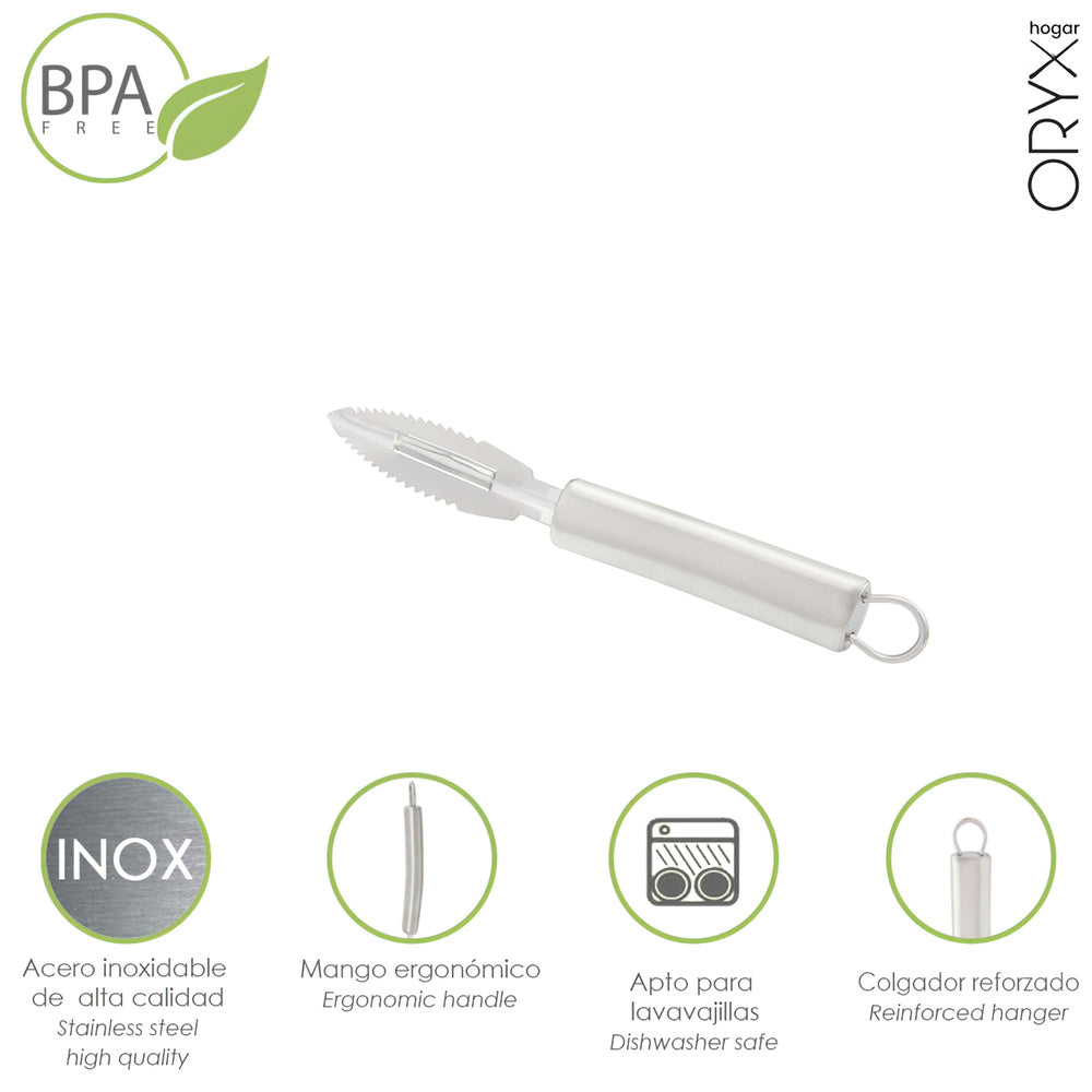 - Descubra toda la gama de utensilios de acero inoxidable: triturador ajos, Pelador frutas y verduras, Descorazonador frutas y Vaciador Frutas.