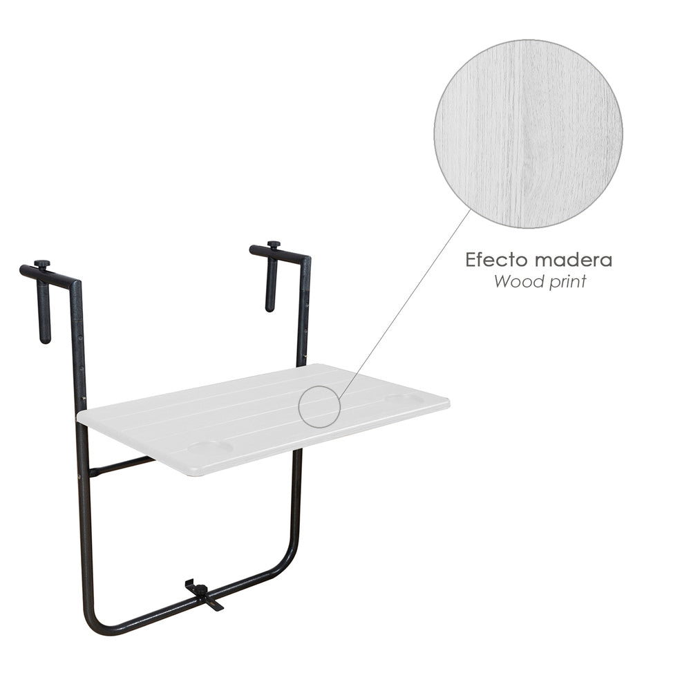 Mesa plegable colgante para balcones / terrazas 36x60 cm. altura regulable