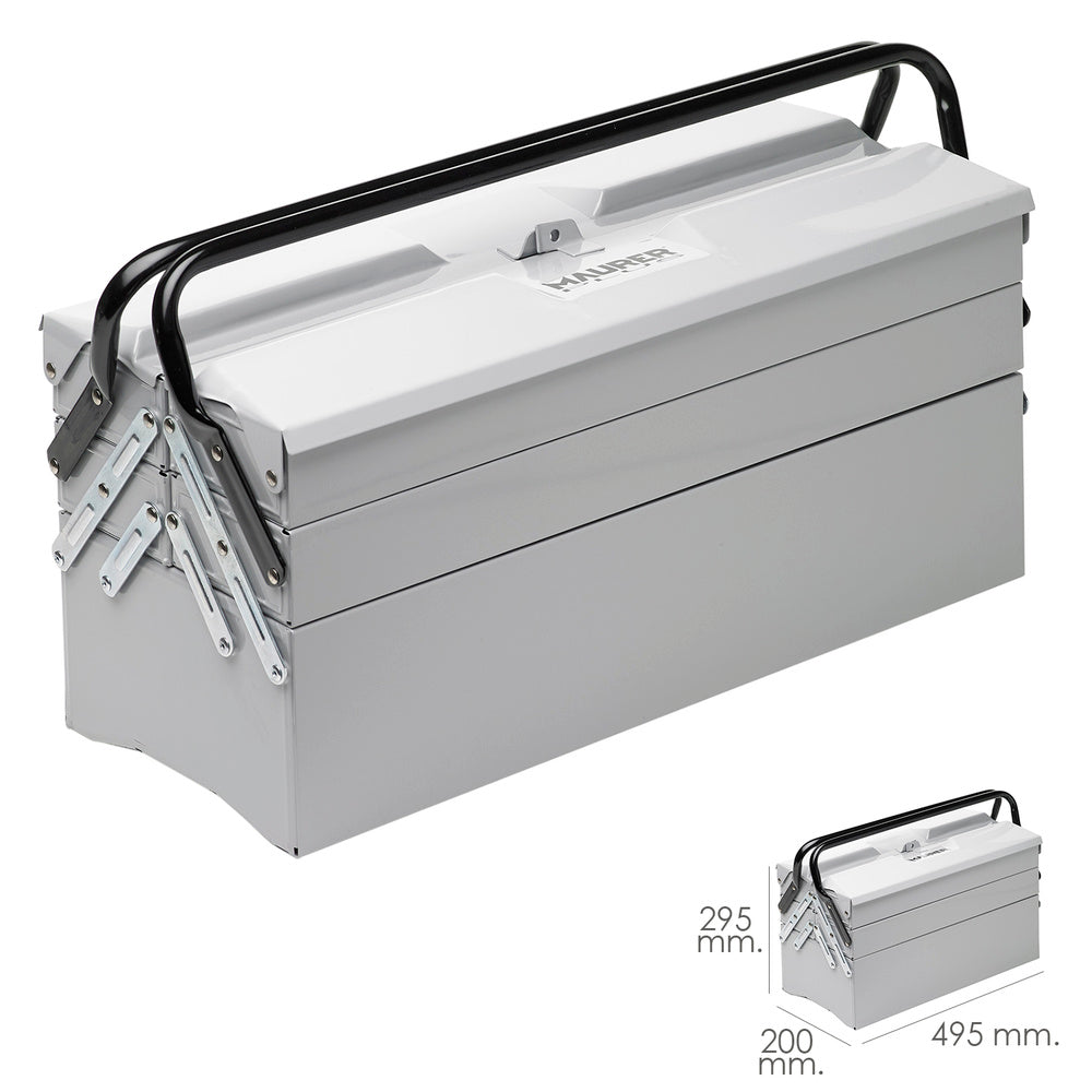 - Dispone de 5 compartimentos, uno en la base y 4 bandejas que se abren al abrir la caja.