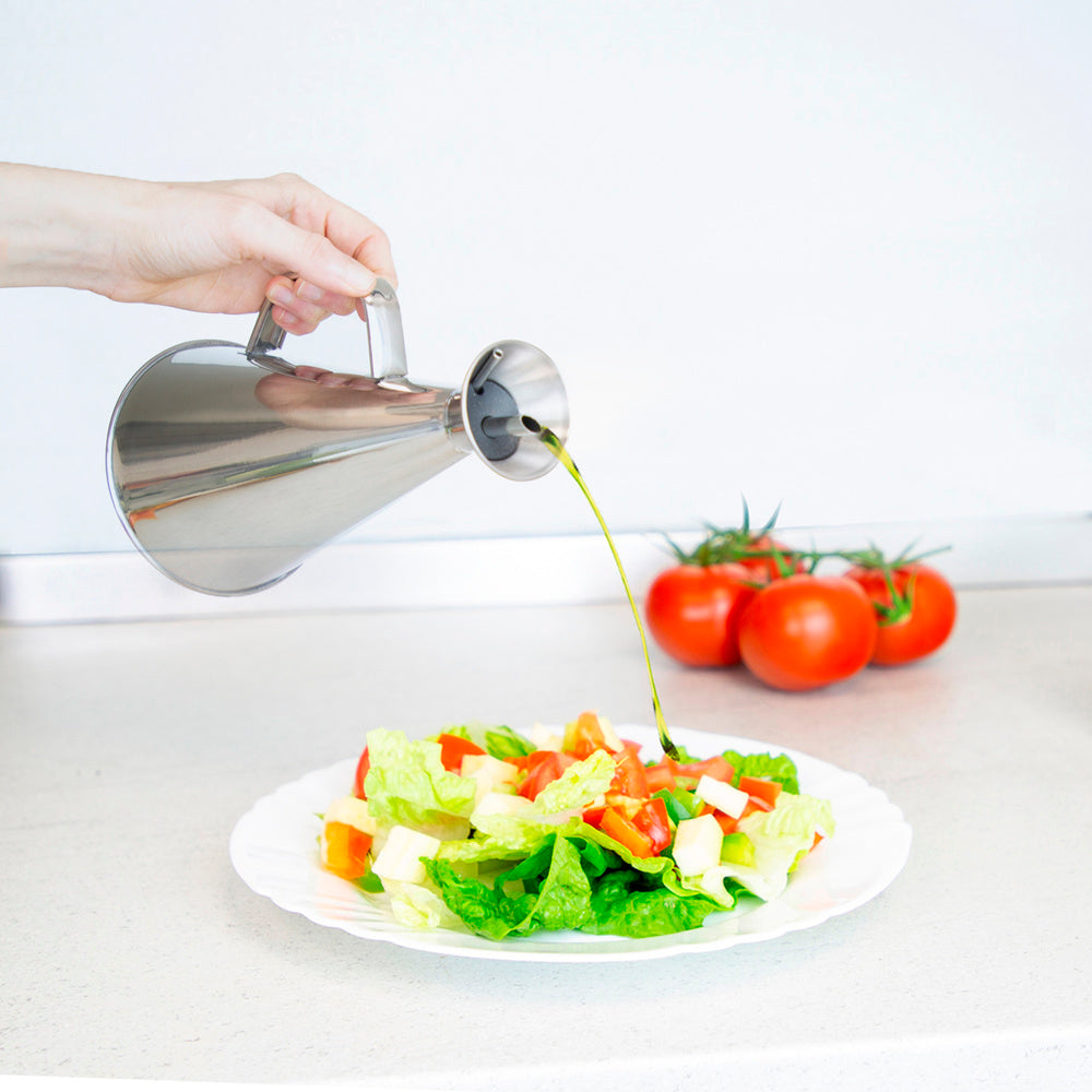 - Fácil de usar e ideal para dispensar aceite en sus ensaladas, comidas, cenas, desayunos, etc.