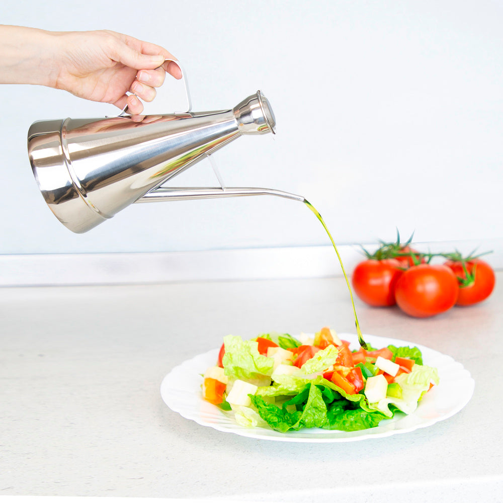 - Fácil de usar e ideal para dispensar aceite en sus ensaladas, comidas, cenas, desayunos, etc.