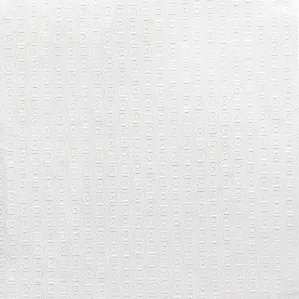 - Mantel Hule Muletón en color blanco y estampado en formas geométricas. Diseño moderno y elegante para cualquier ocasión.