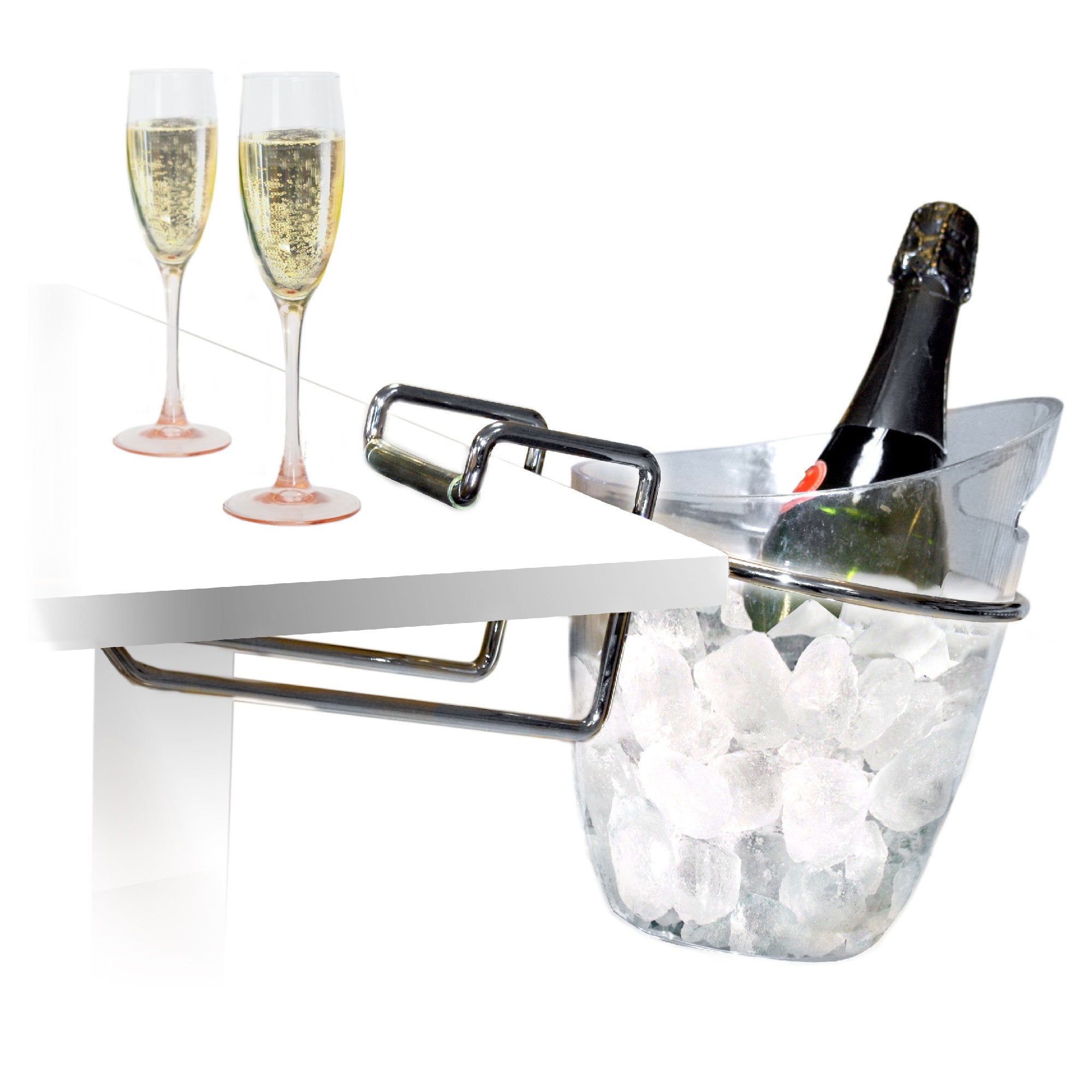 Dale un toque distinguido a tus celebraciones con el Soporte de Mesa para Cubitera Vin Bouquet, ideal para mantener el vino o champagne al alcance sin ocupar espacio en la mesa.