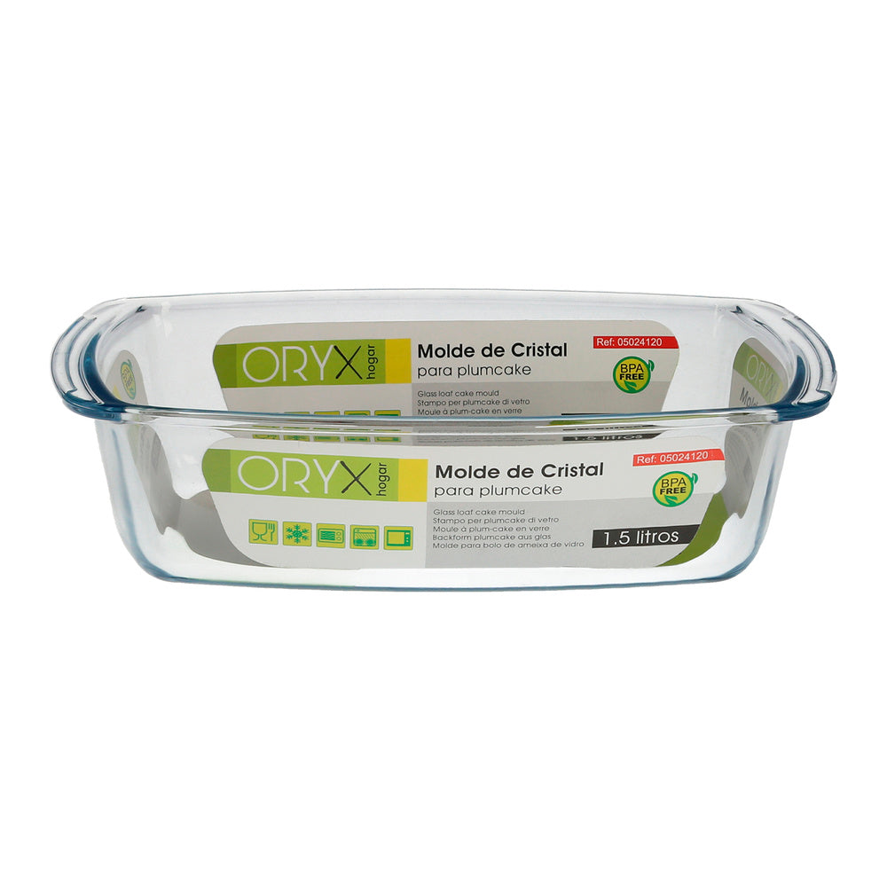 Fuente Cristal Para Horno, 1.5 Litros, Molde Especial Reposteria, 27x14x7 cm.