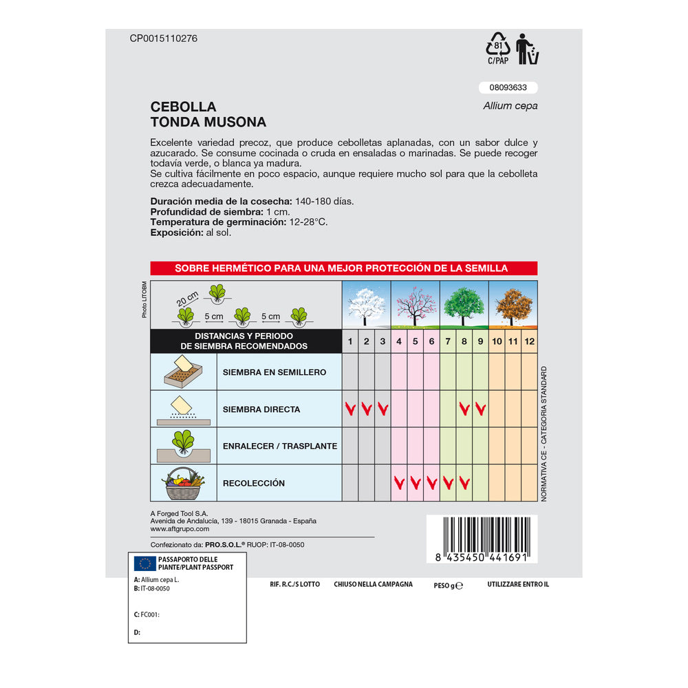 - Temperatura de germinación: 12-28 ºC.