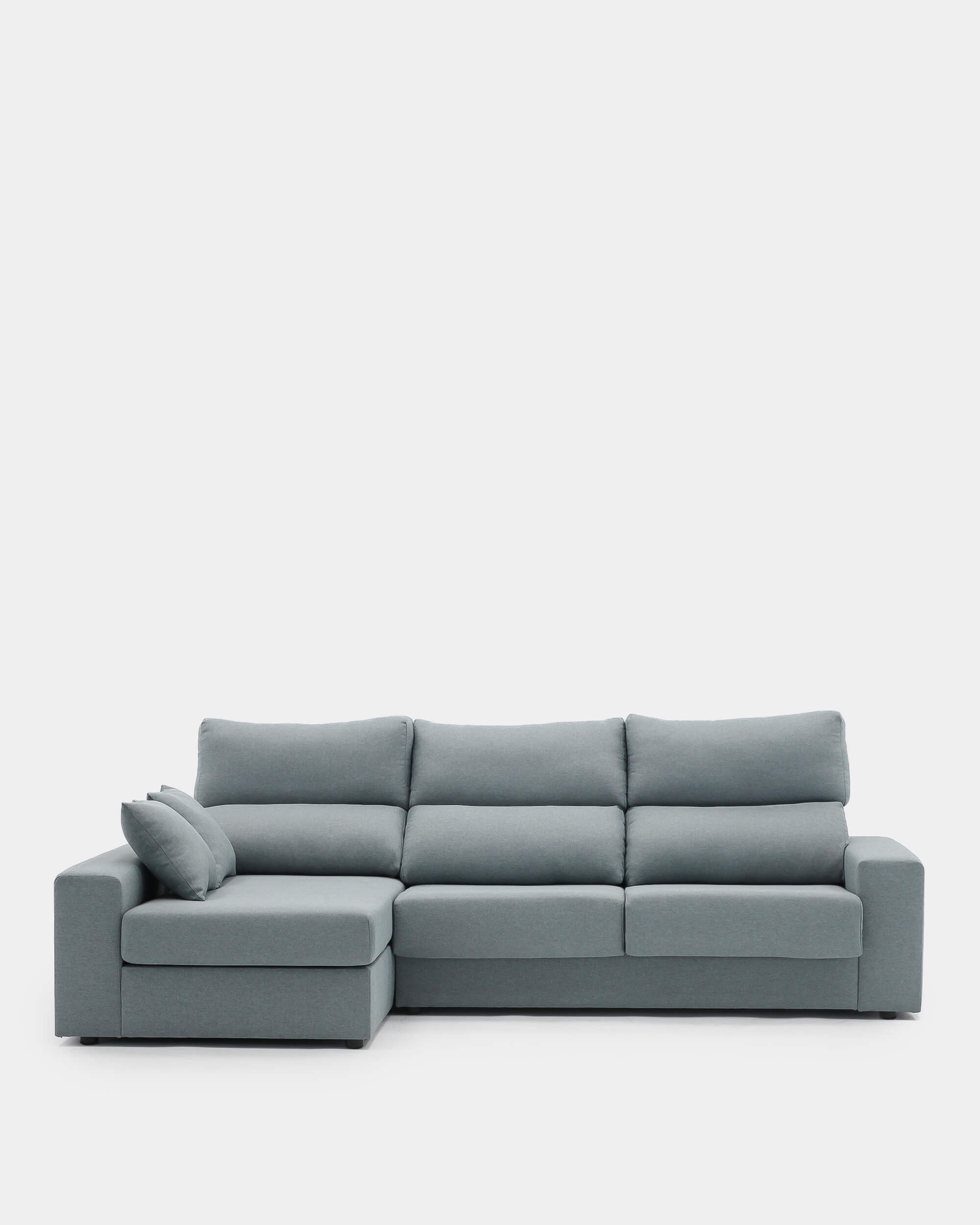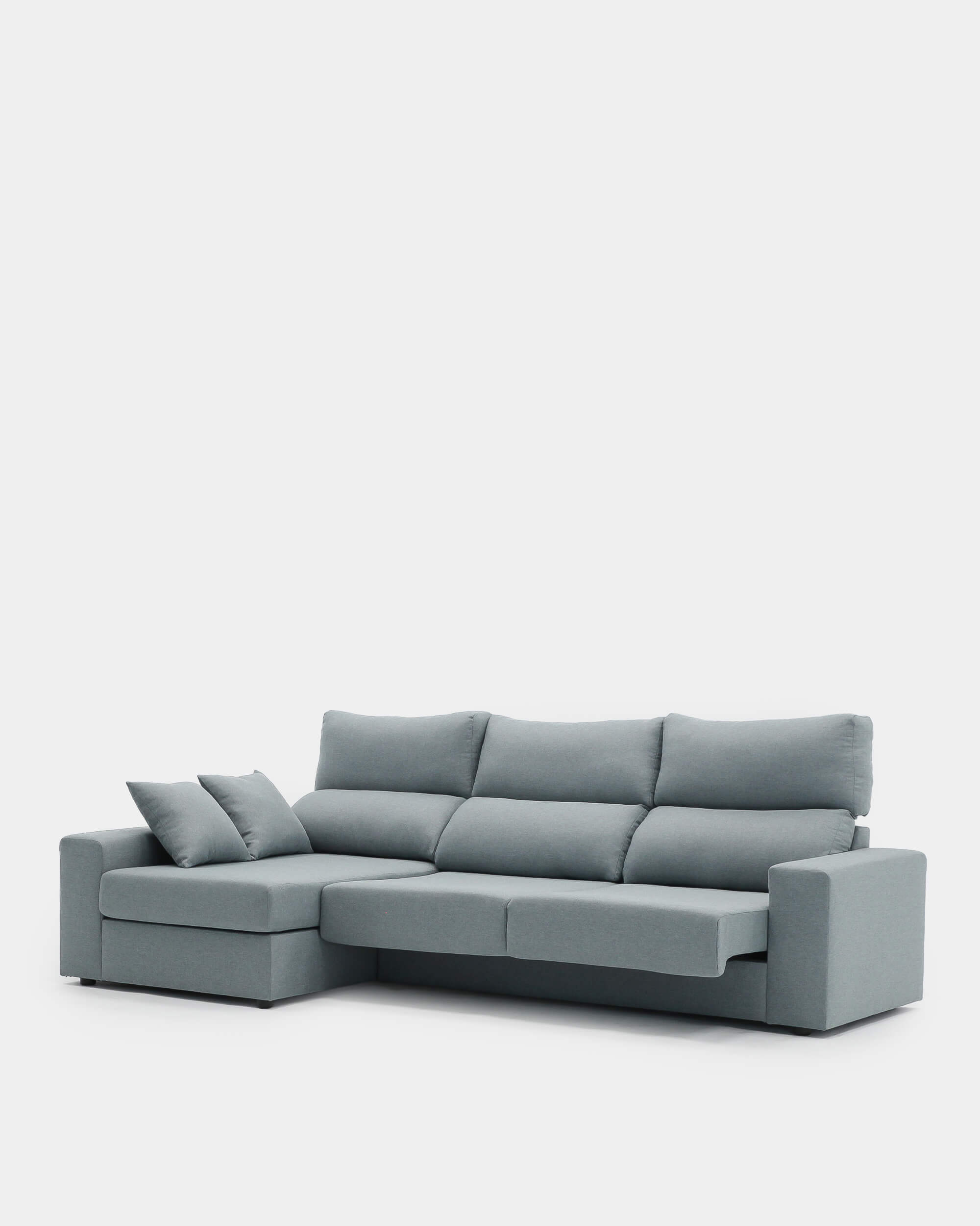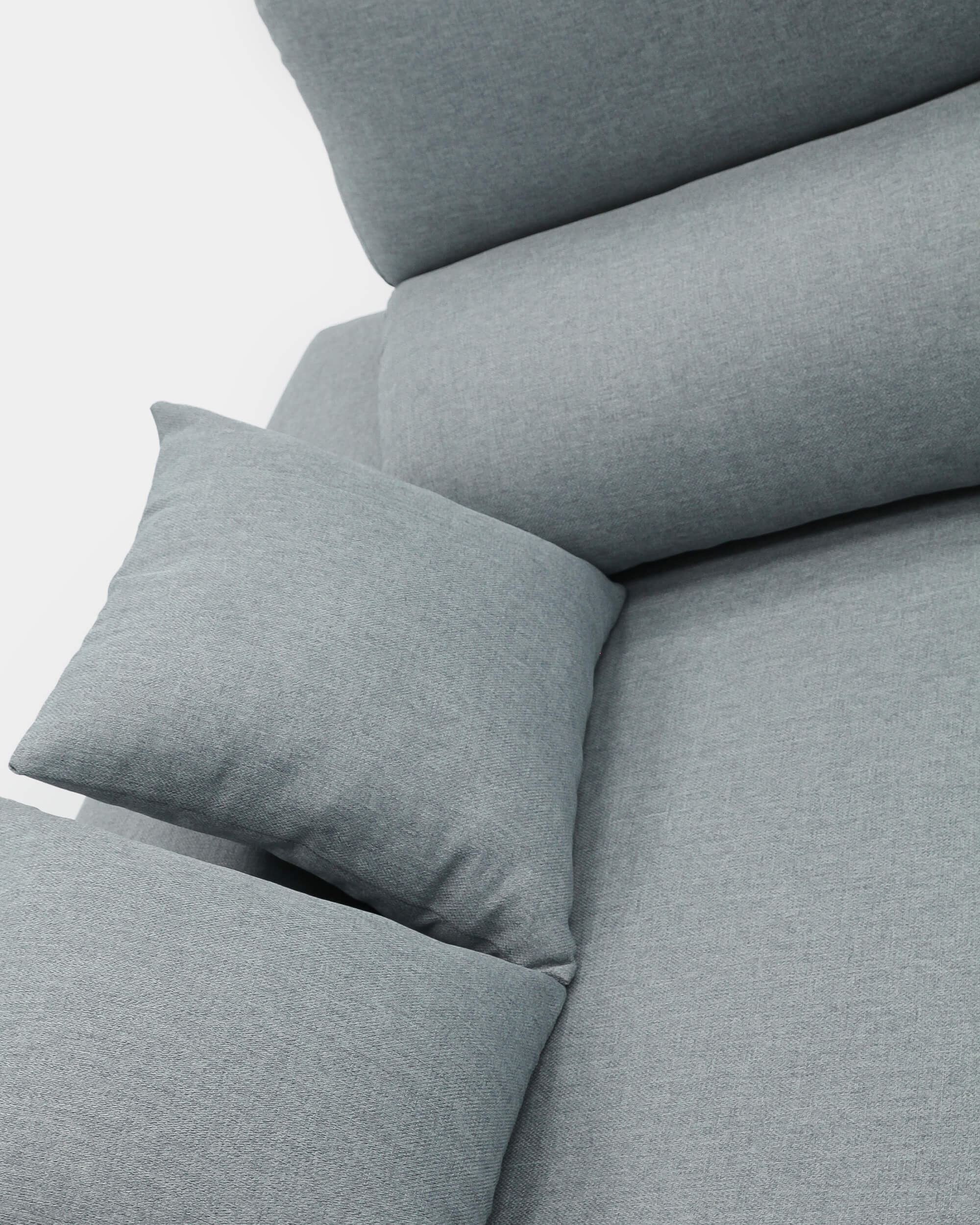 Sofá chaiselongue Jade de Gumer, pensado para salones contemporáneos que buscan confort y estilo. Sus 3 plazas y asientos deslizantes ofrecen un espacio cómodo para relajarte o compartir y está disponible en liquidación con unidades limitadas.