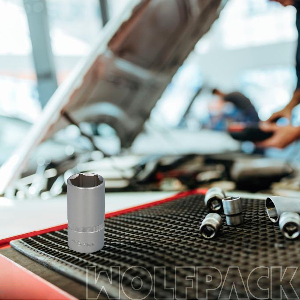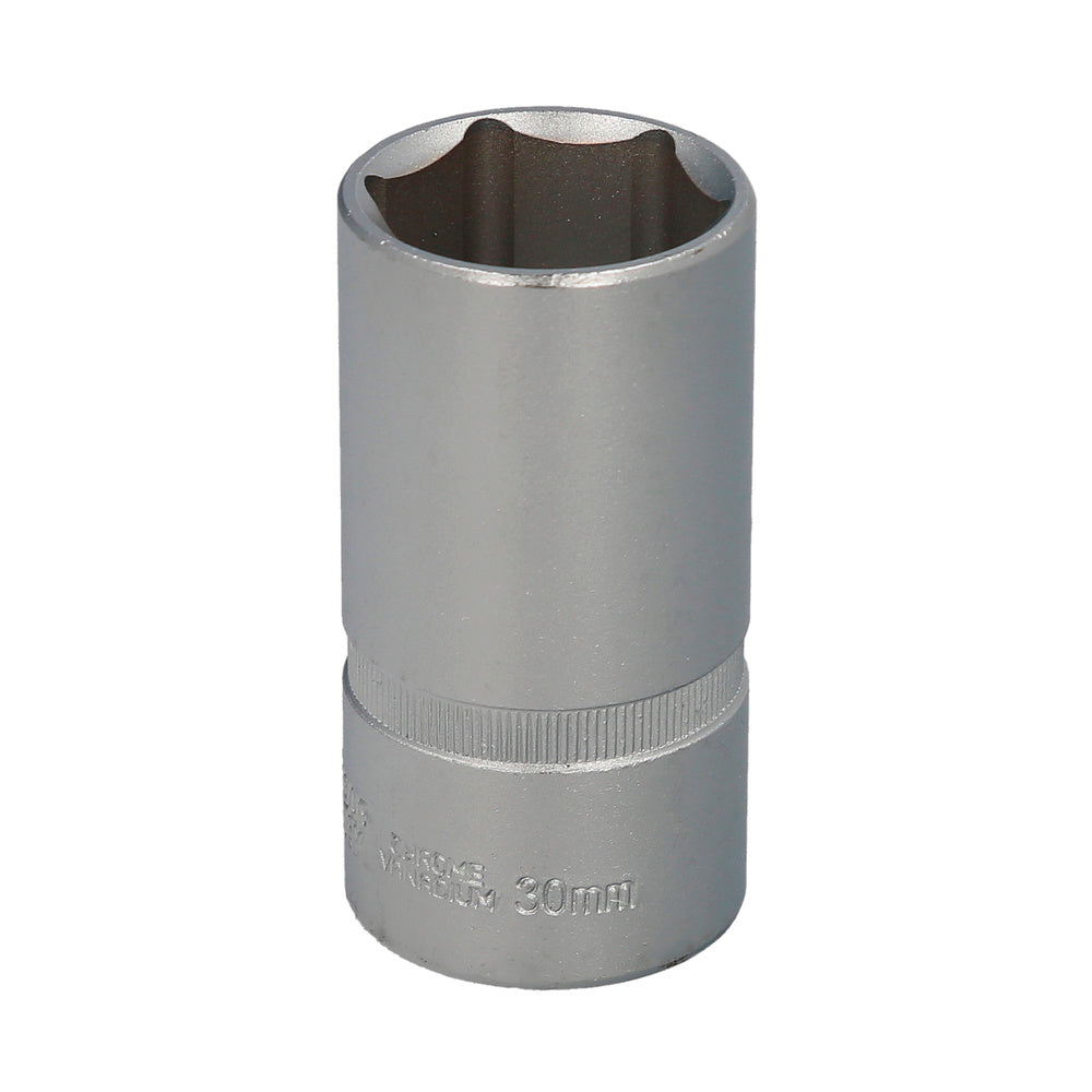 Llave vaso 1/2" hexagonal larga 30 mm. perfil de 6 caras. acero cromo vanadio, aristas redondas