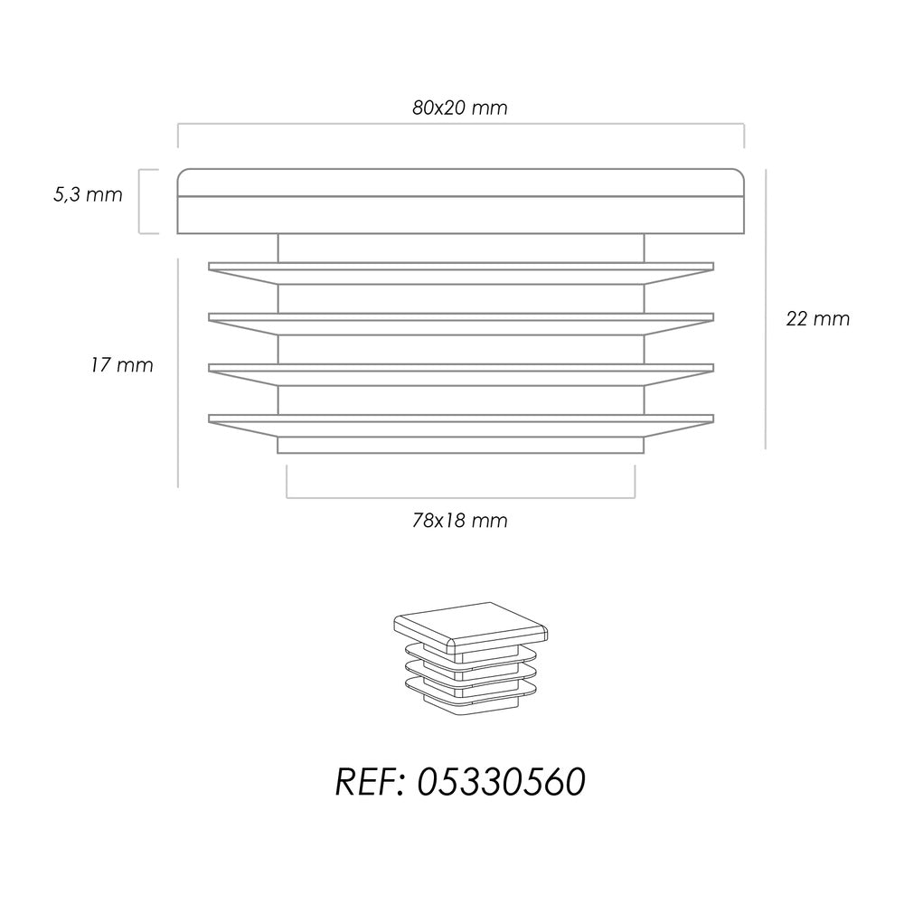 Contera plástico rectangular interior. color negro 80x20 mm bolsa 100 unidades