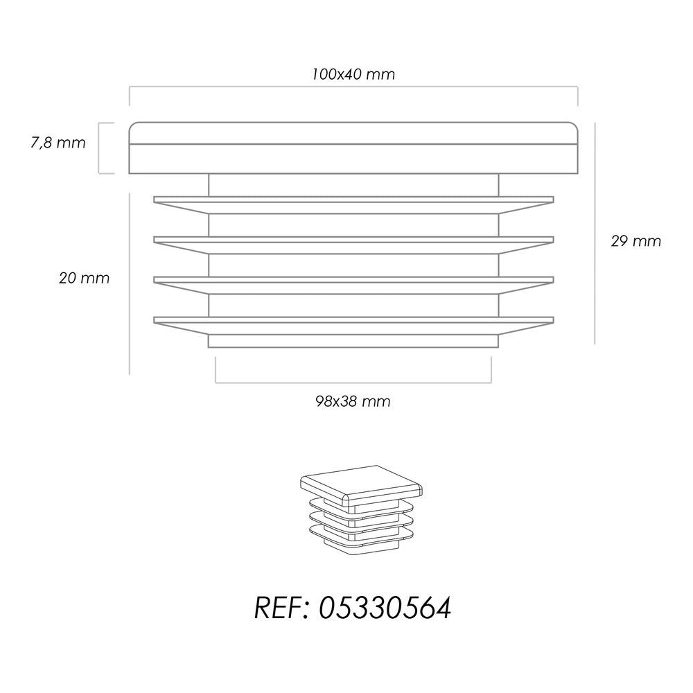 Contera plástico rectangular interior. color negro 100x40 mm bolsa 25 unidades