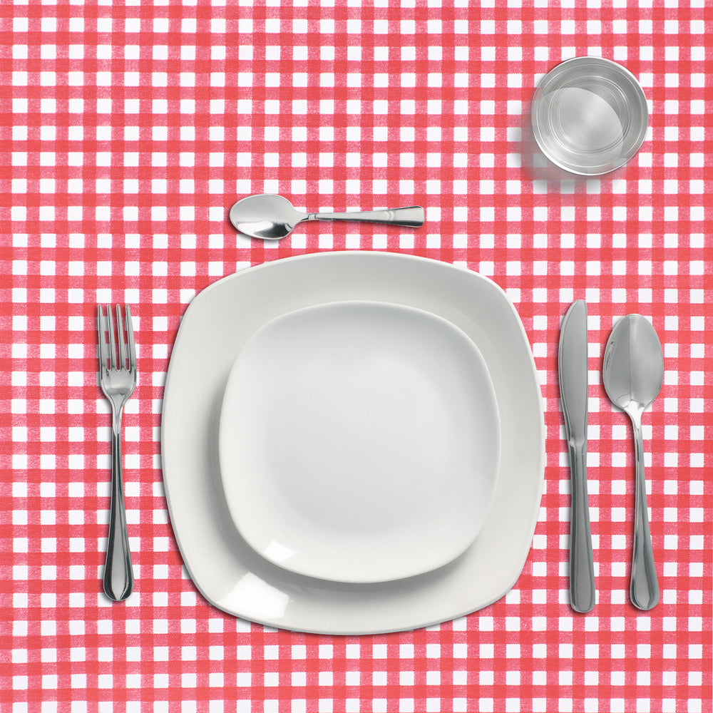 Mantel Hule Rectangular 140 x 250 cm. Cuadros Rojos