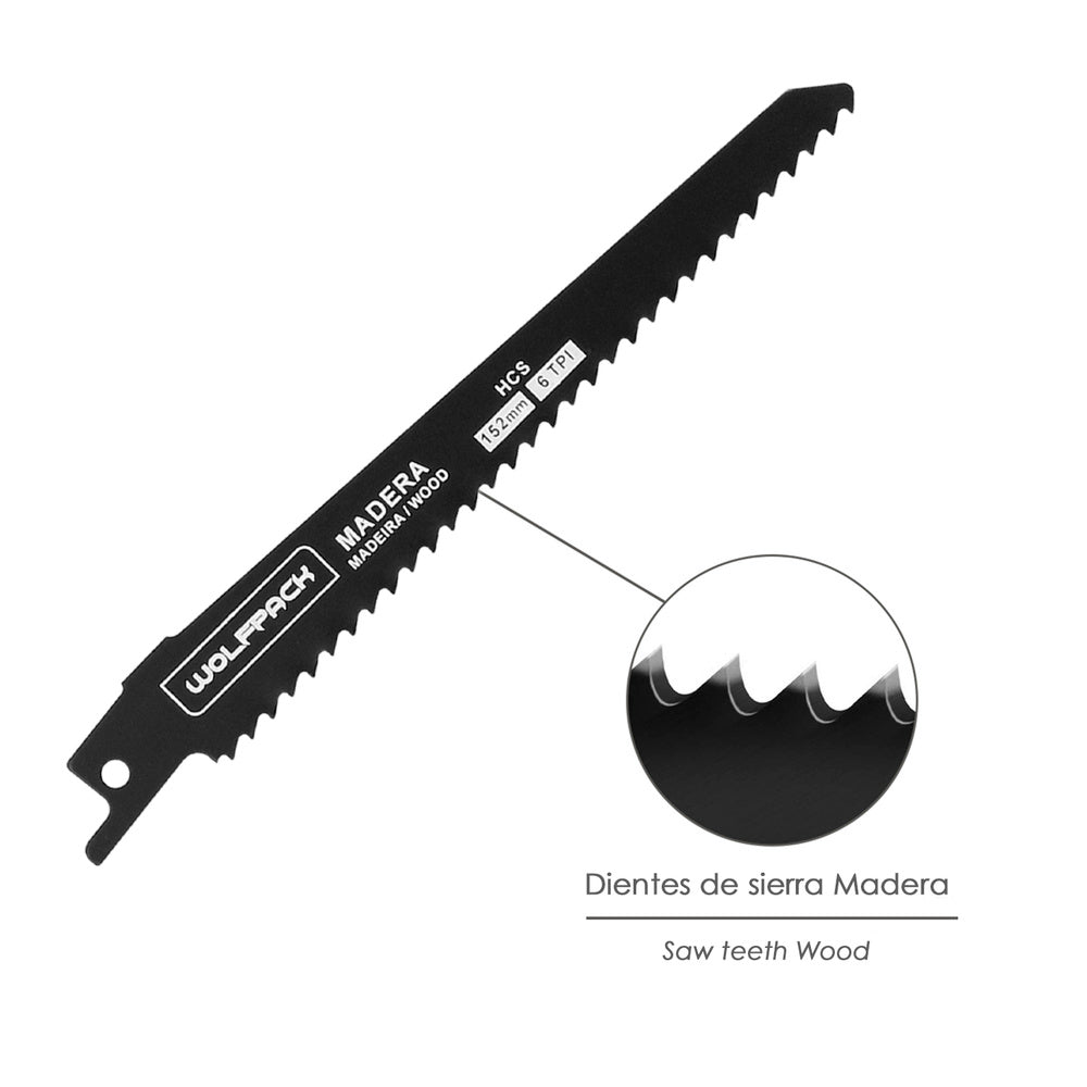 Hoja para sierra sable madera 152 mm. 6 TPI. 5 piezas. especial para madera