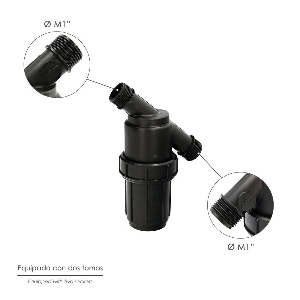 Filtro con malla interior 1" para sistema de goteo (malla 100 mesh) riego por goteo, microaspersión, riego por nebulizacion