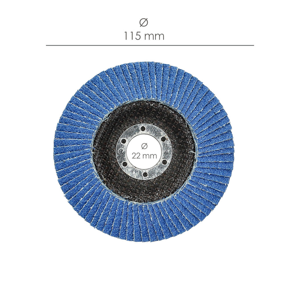 - Aletas del disco con circonio y un angulo de 10º. El circonio le aporta una duración mayor. Disco de lija para amoladora de 115 mm.