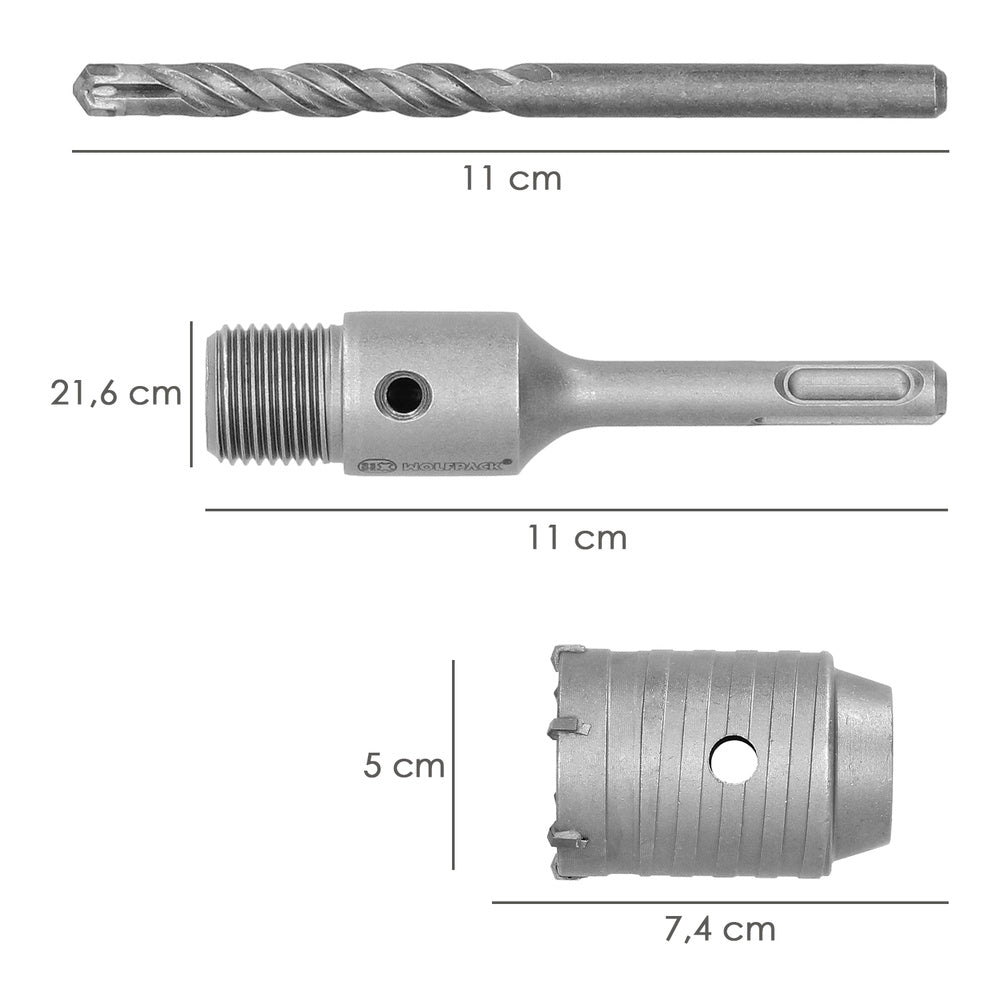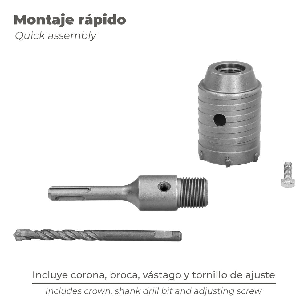 - Componentes: 1 sierra de corona, 1 portabrocas, 1 broca guía.