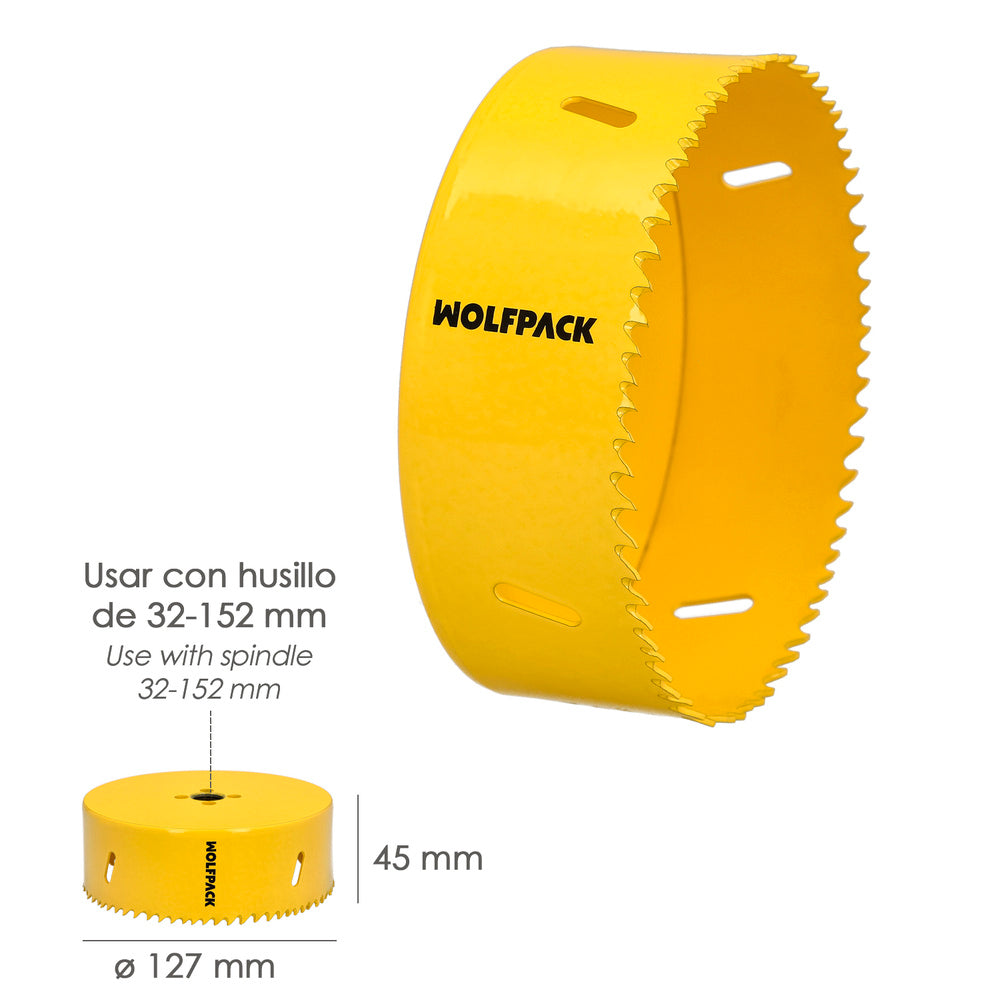 Corona sierra bimetal ø 127 mm. templado térmico, base reforzada. corona madera, broca agujeros madera, acero, hierro, plásticos