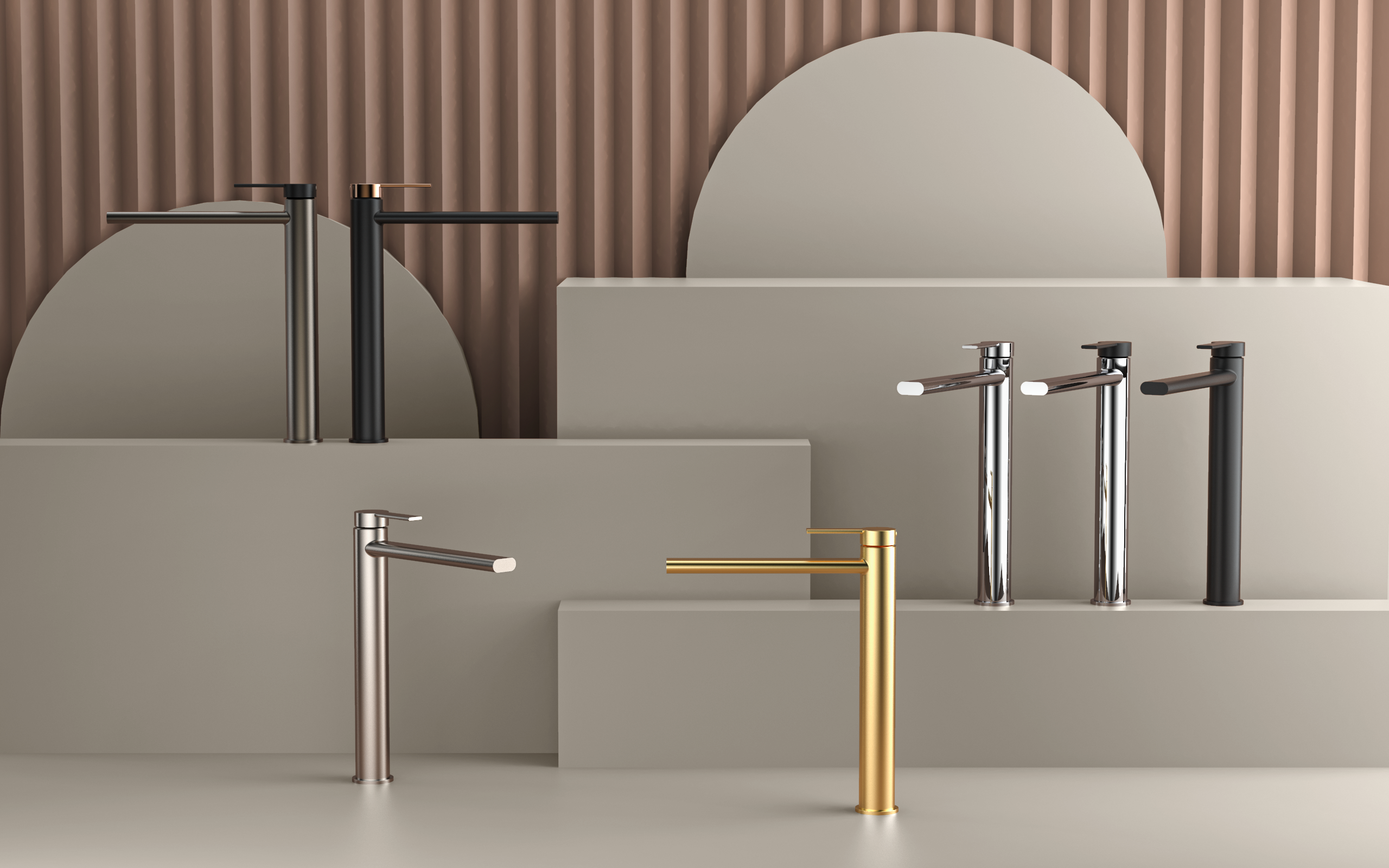 • Caño alto: diseño que facilita la limpieza y la comodidad en lavabos de tamaño medio a grande.