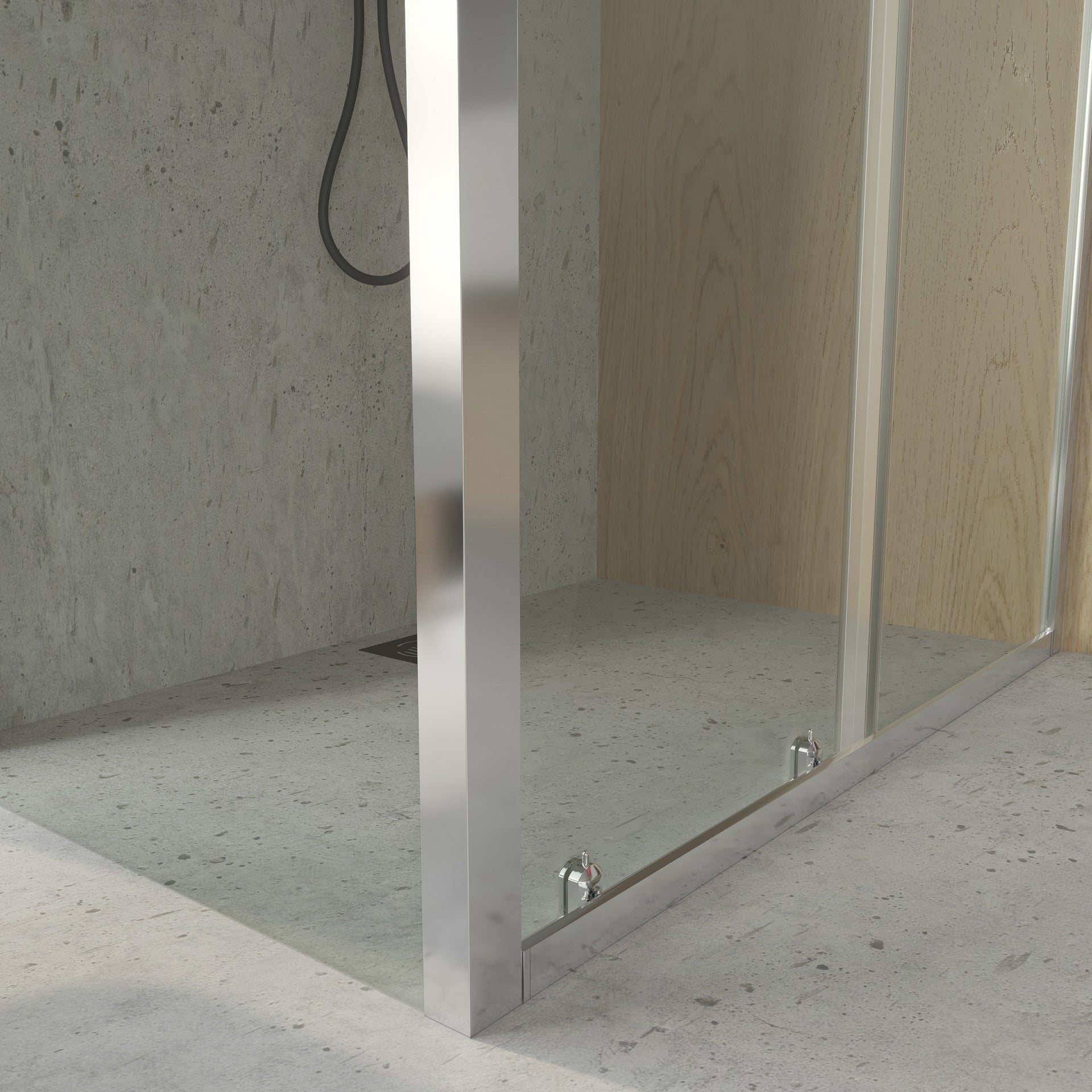 La mampara de ducha lateral fija y frontal corredera cromo es una solución moderna para baños con plato de ducha. Pensada para ofrecer amplitud y un acceso cómodo, combina un lateral fijo con un frontal corredero y un perfil minimalista en cromo brillo.